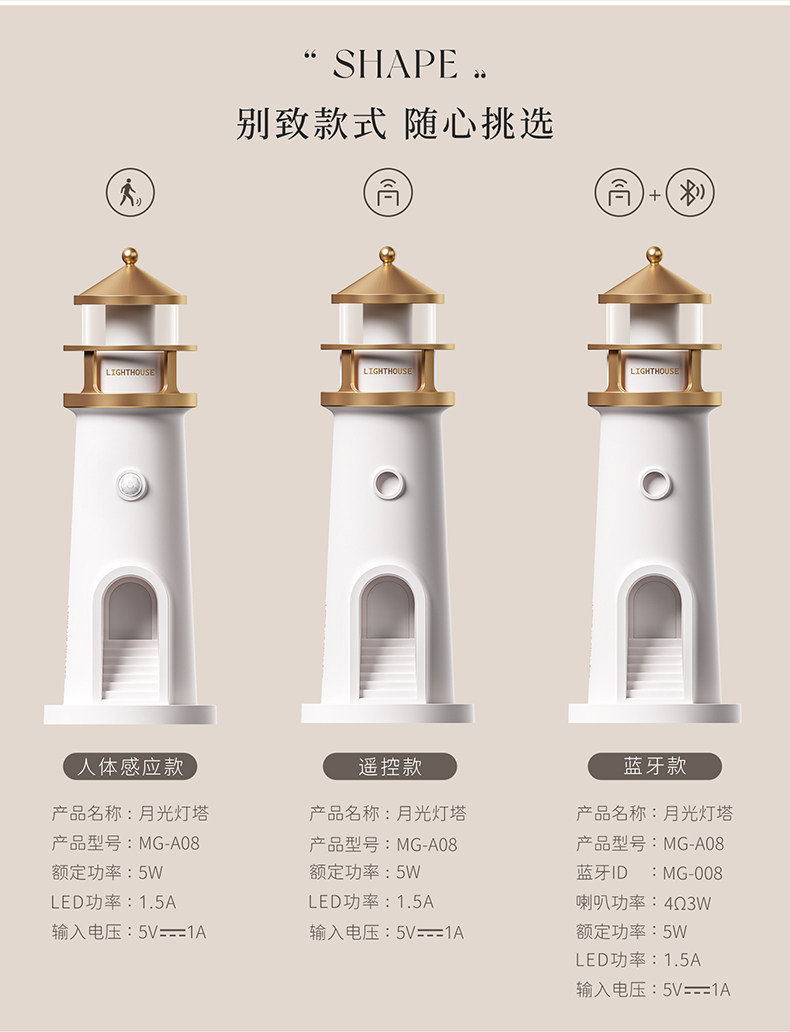 등대 달 밤 빛 블루투스 오디오 원격 제어 침실 머리맡 수면 램프 밤 동반자 수면 테이블 램프 생일 선물스토어 가기