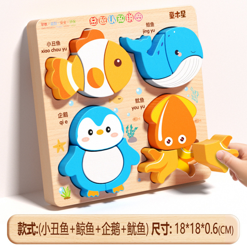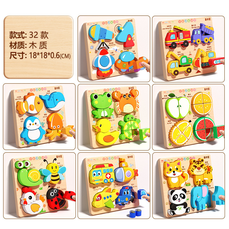 어린이 입체 나무 퍼즐 보드 아기 몬테소리 조기 교육 매칭 동물 1 ~ 3 세 모양 빌딩 블록 장난감 무료 배송