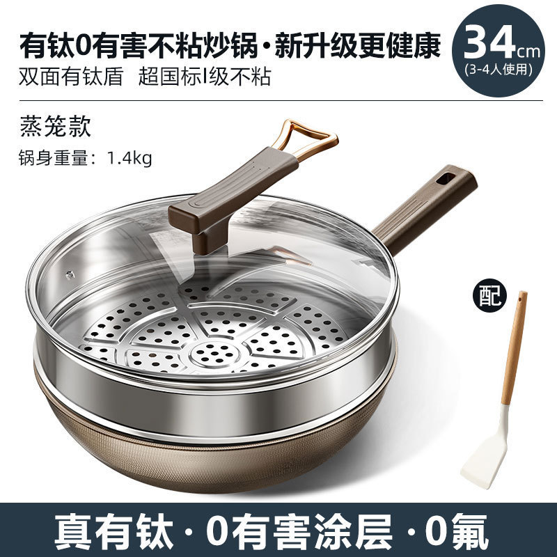 새로운 티타늄 쿡팬 스테인레스 스틸 요리 냄비 가정용 불소 코팅 붙지 않는 냄비 범용 스토브 양면 냄비스토어 가기