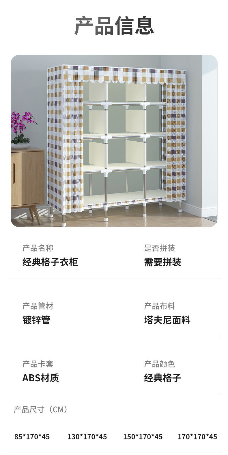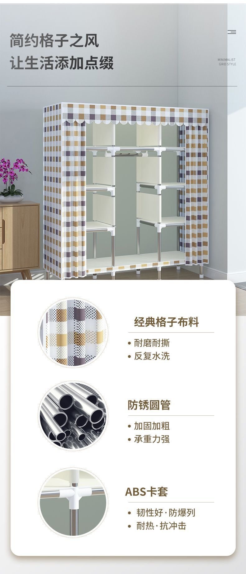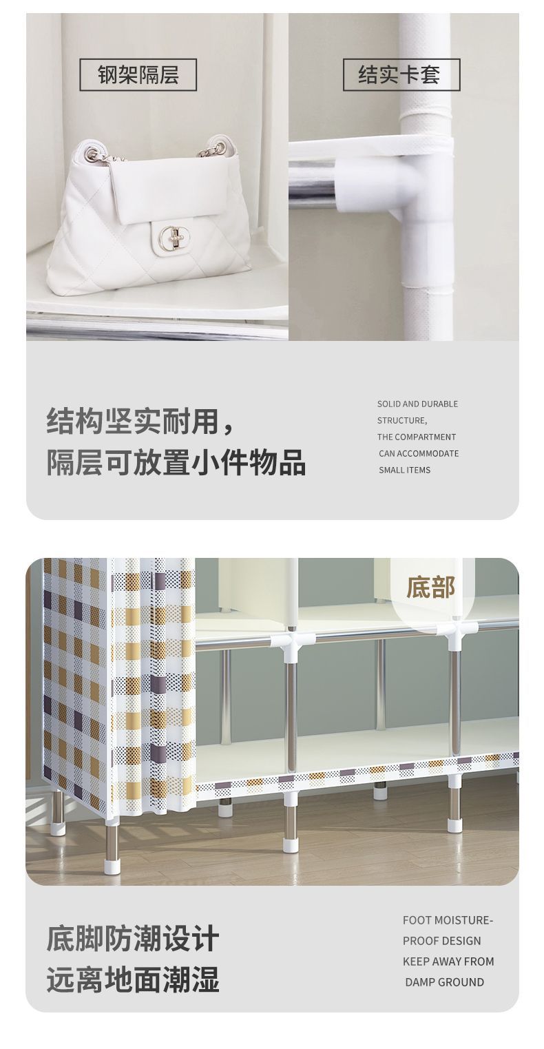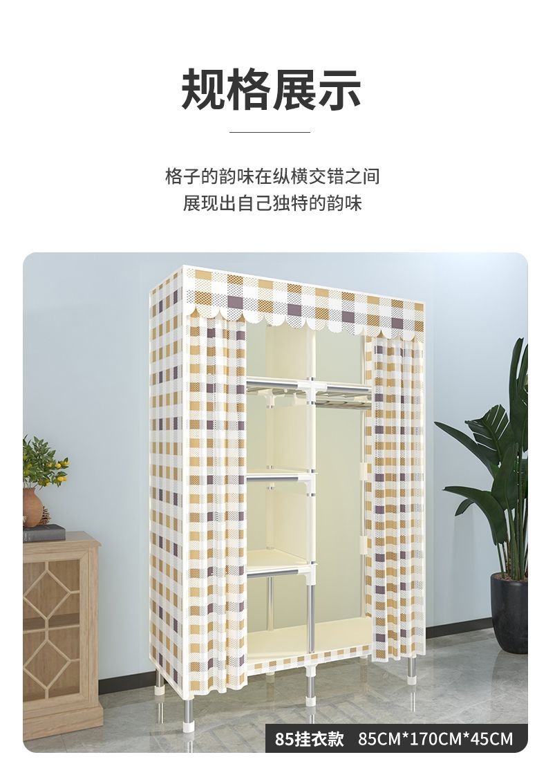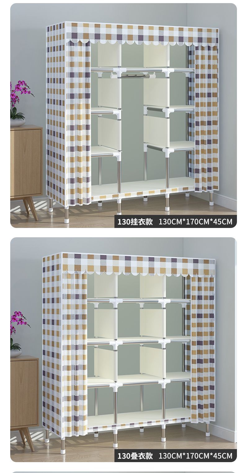 2025 새로운 간단한 옷장 홈 침실 천 옷장 강철 파이프 강력하고 내구성이 뛰어난 경제적 인 임대 주택 Tω스토어 가기