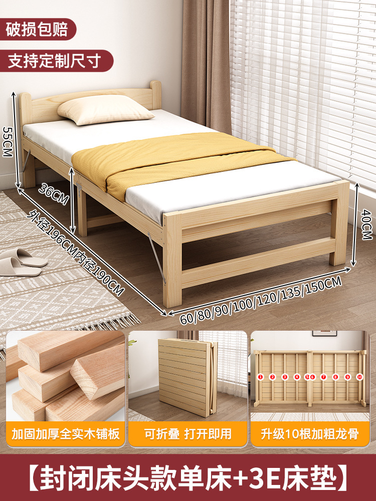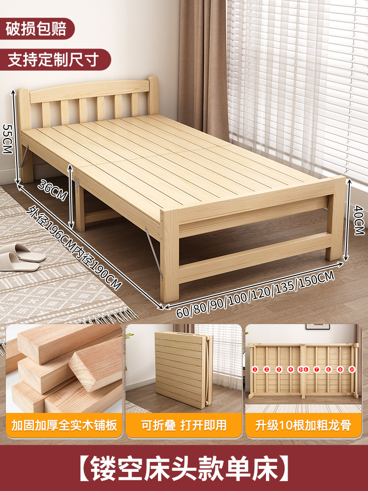 접이식 침대 원목 90cm 싱글 침대 사무실 점심 침대 가정용 낮잠 성인 나무 침대 임대 간단한 Tω스토어 가기