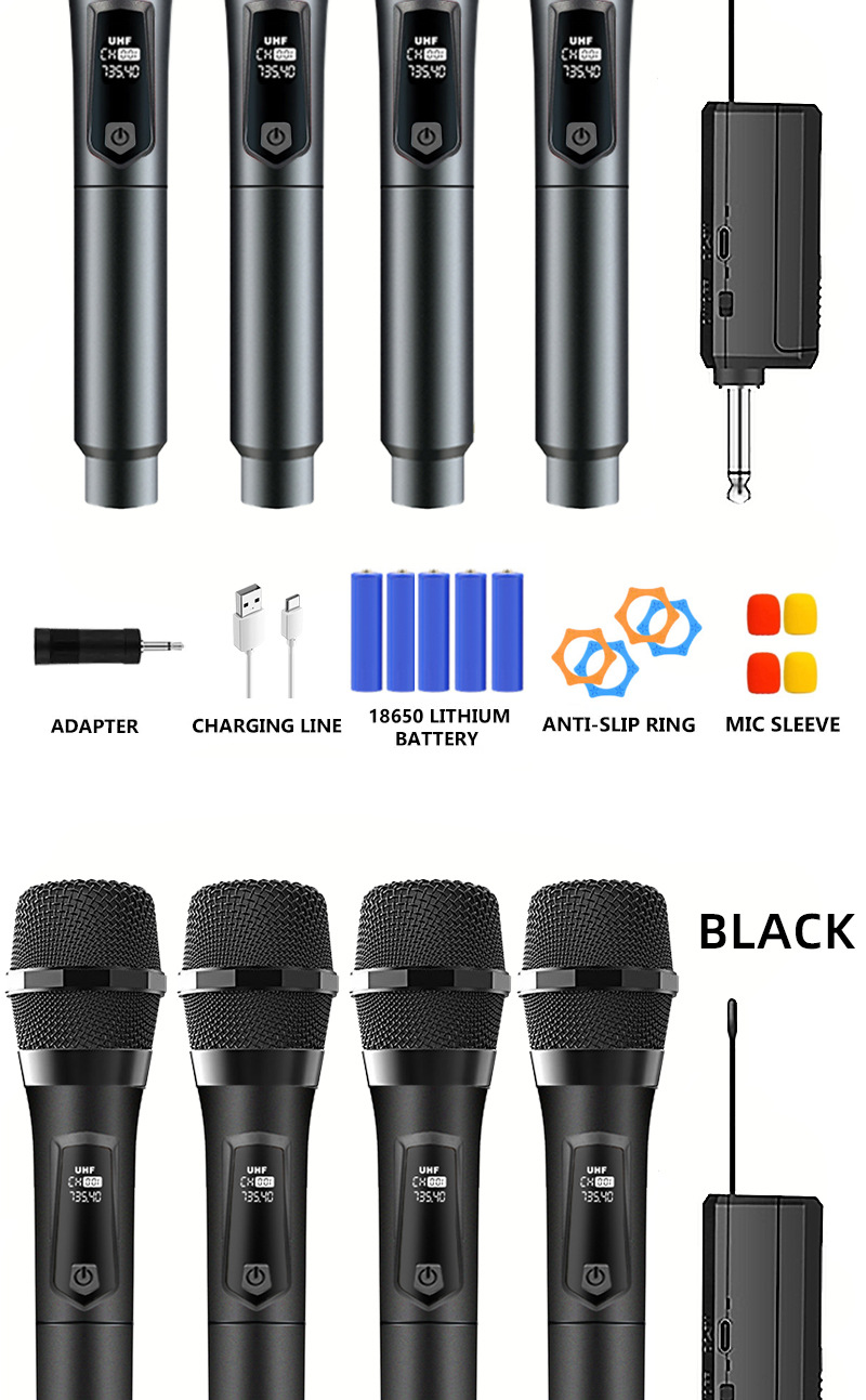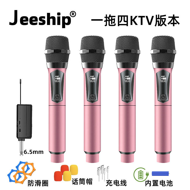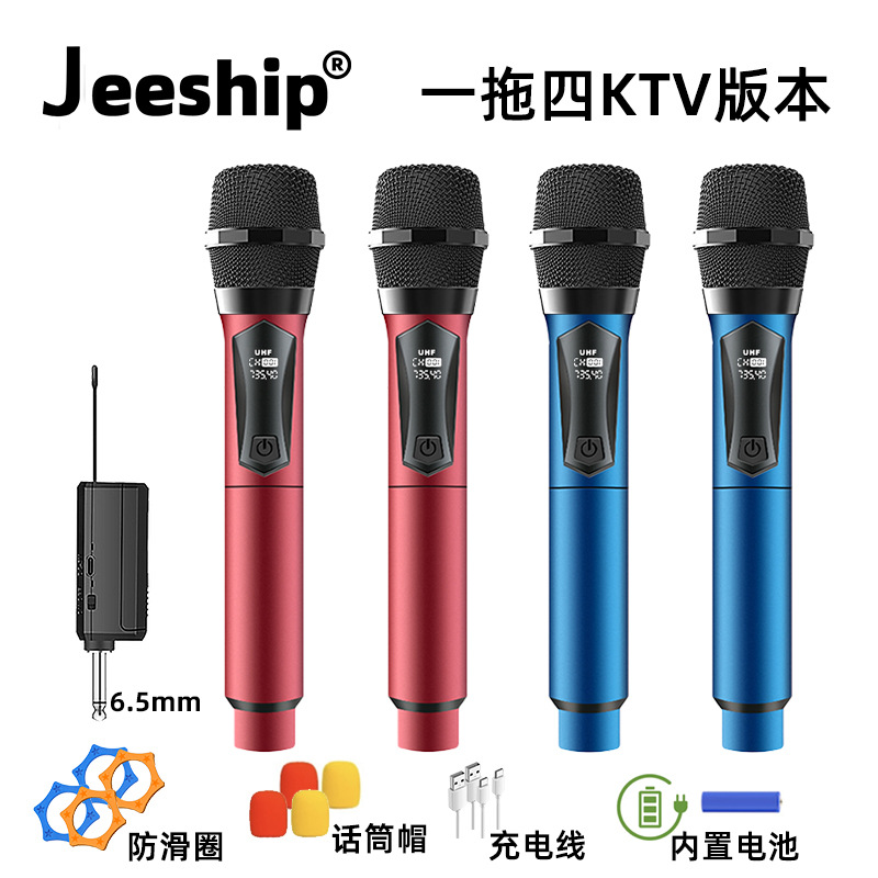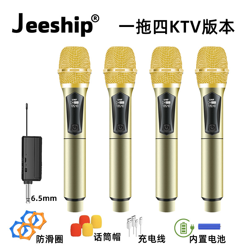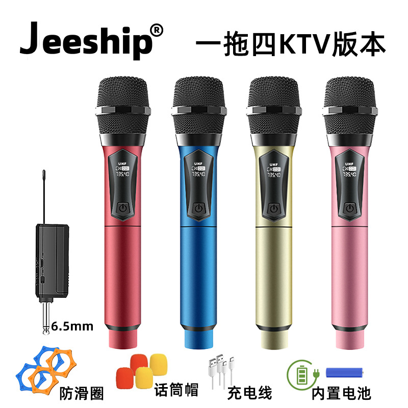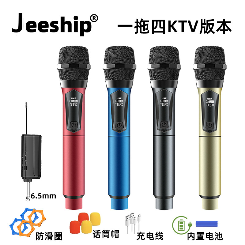 충전식 마이크 1대4 노래방 KTV 오디오 앰프 라이브 방송 사운드 카드 무대용 핸드헬드 마이크 무선 전문가용
