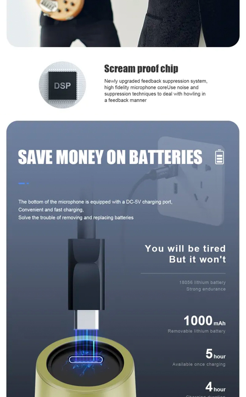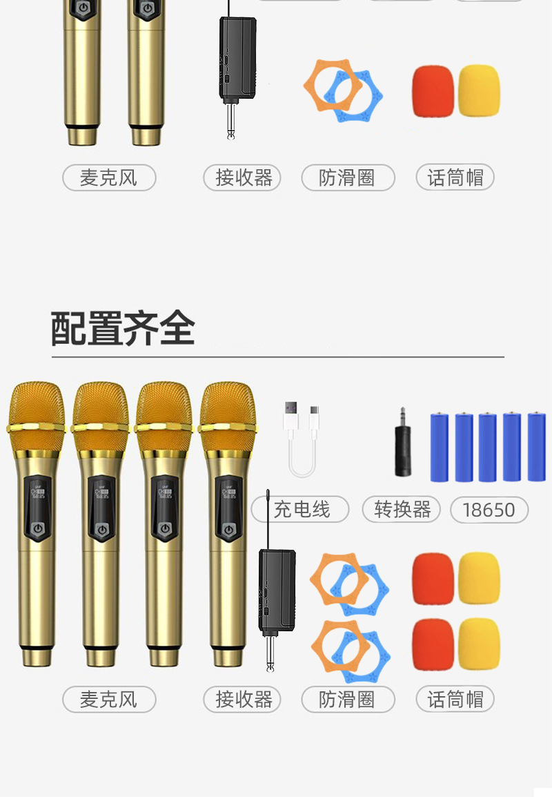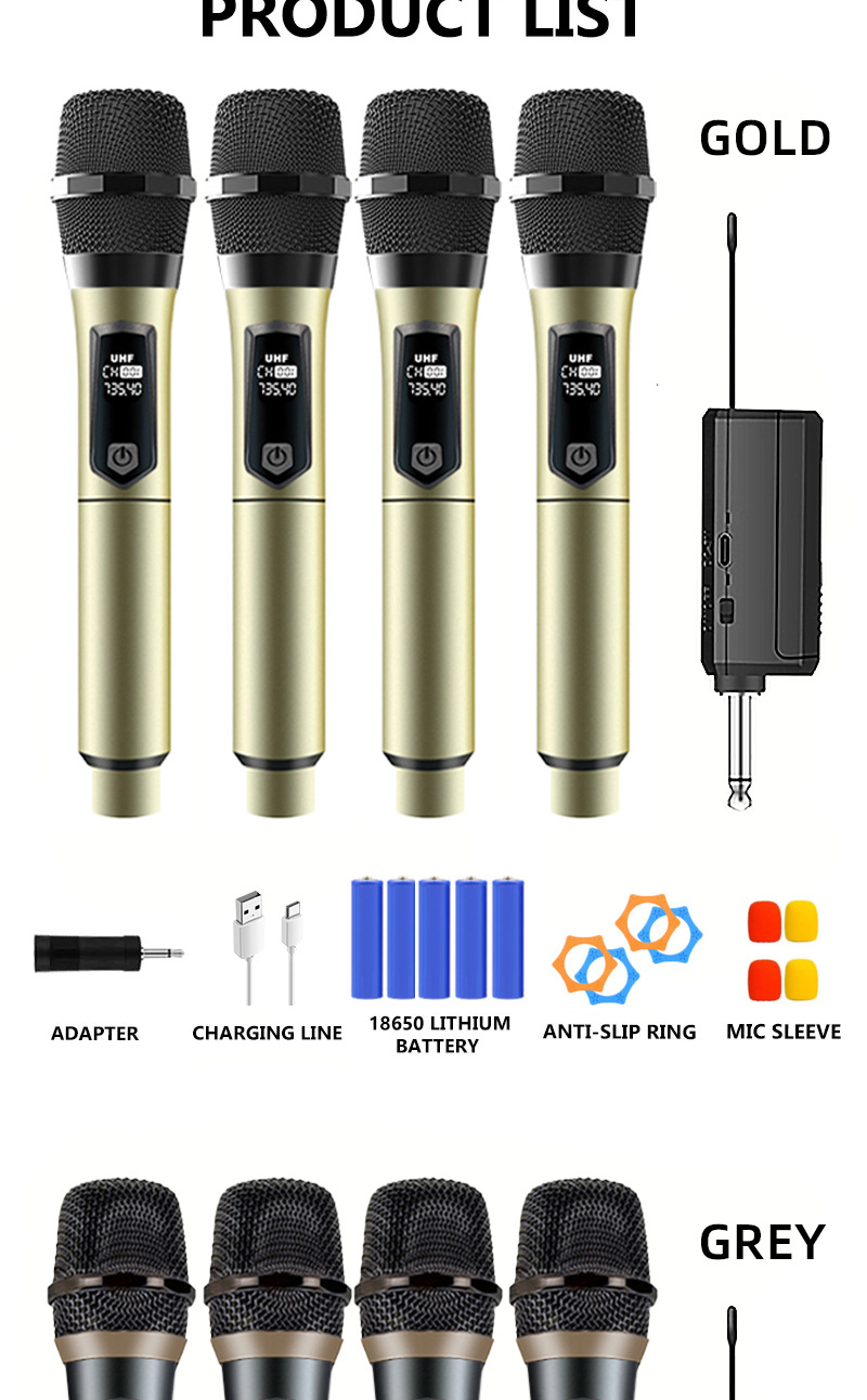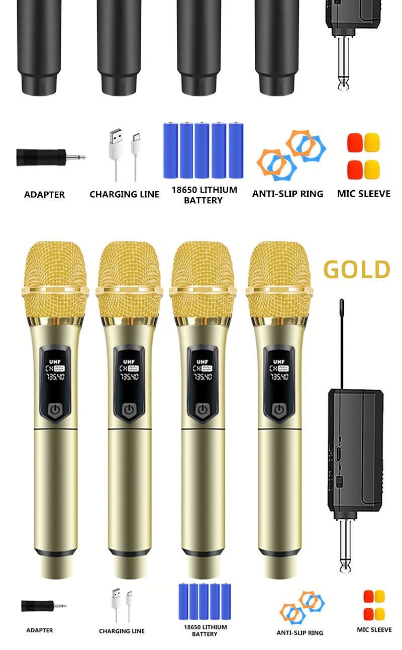 충전식 마이크 1대4 노래방 KTV 오디오 앰프 라이브 방송 사운드 카드 무대용 핸드헬드 마이크 무선 전문가용