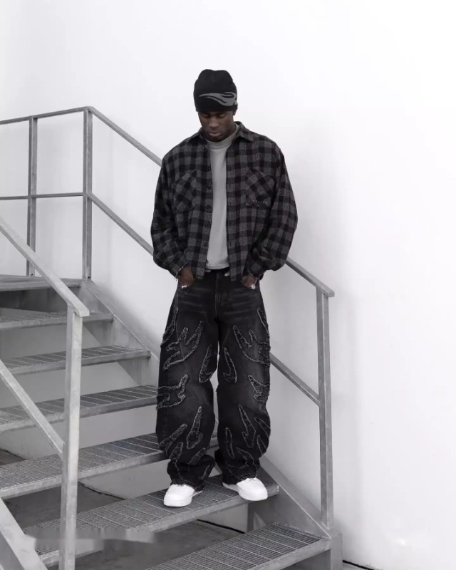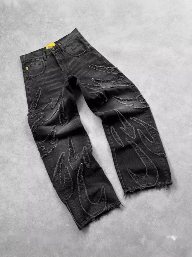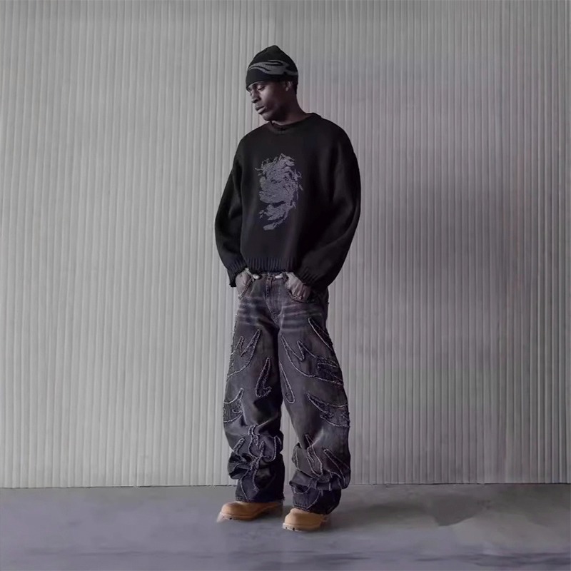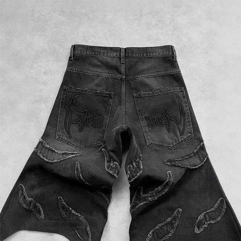 아메리칸 스타일 하라주쿠 빈티지 박쥐 패턴 자수 루즈한 청바지 남성 스트리트 패션 바지 루즈한 청바지스토어 가기