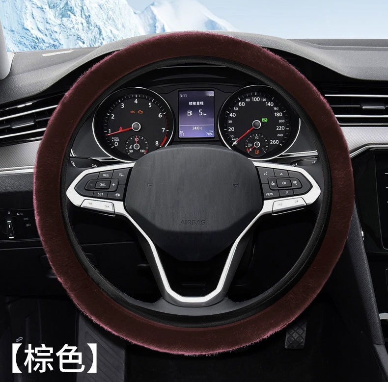 자동차 핸들 커버 겨울 플러시 자동차 따뜻한 핸들 커버 미끄럼 방지 모조 밍크 플러시 범용 스티어링 휠 커버