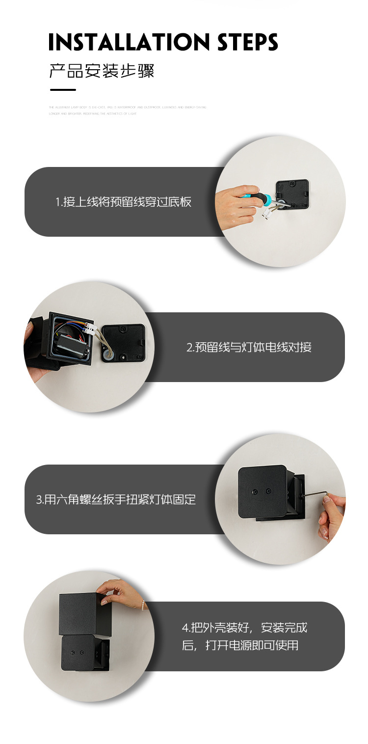 • 6W 검정색 조광 벽 램프-따뜻한 조명