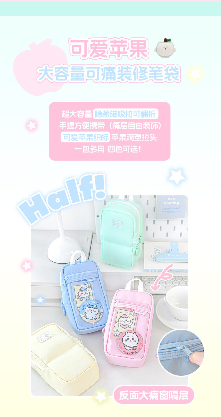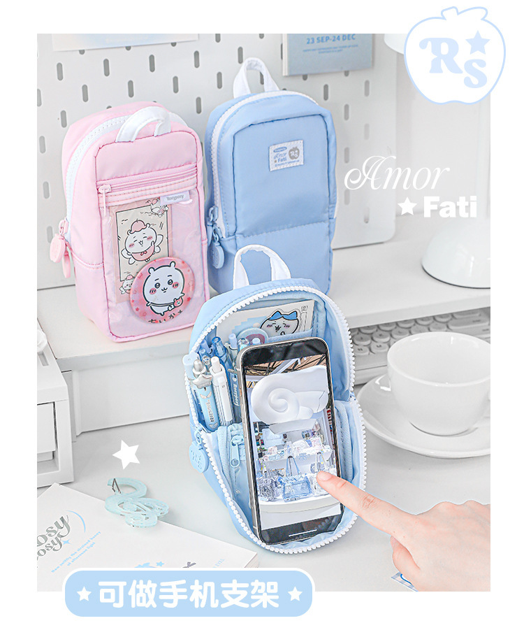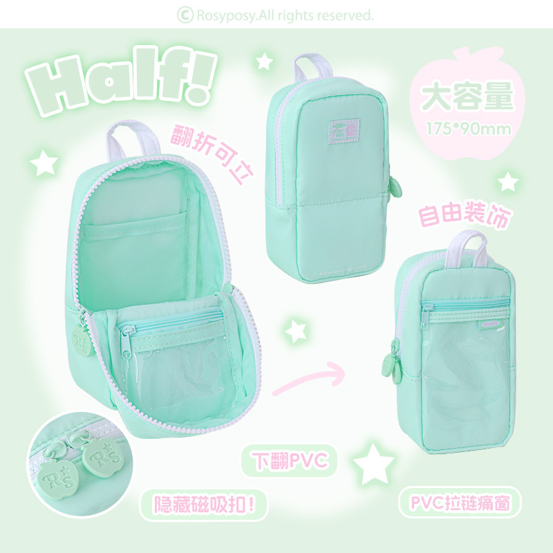 RosyPosy 소프트 장식 펜 가방 하프 하이룩 소녀 수납 대용량 자석 펜 가방