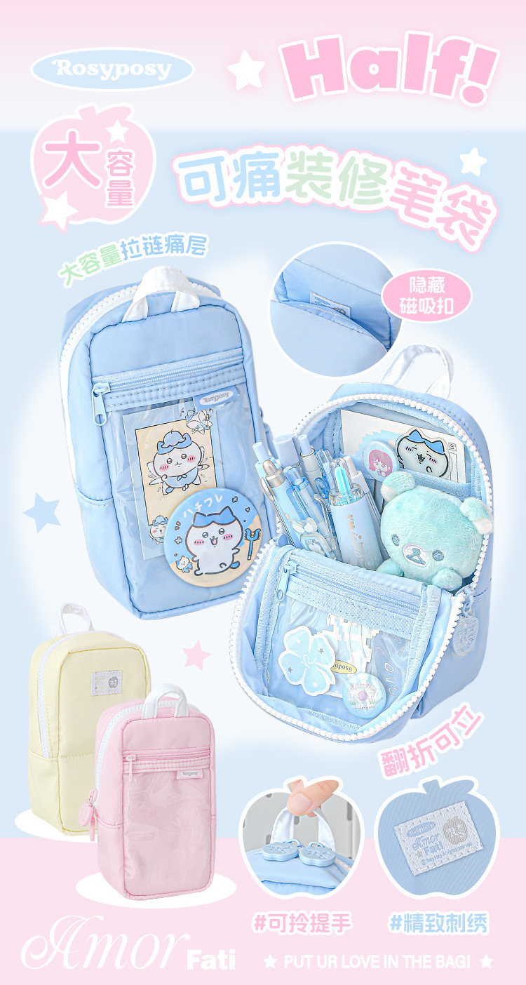 RosyPosy 소프트 장식 펜 가방 하프 하이룩 소녀 수납 대용량 자석 펜 가방스토어 가기