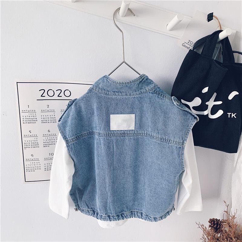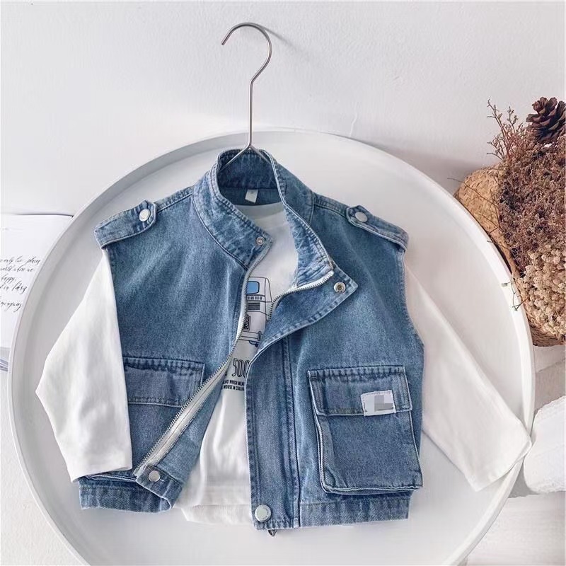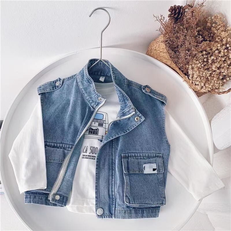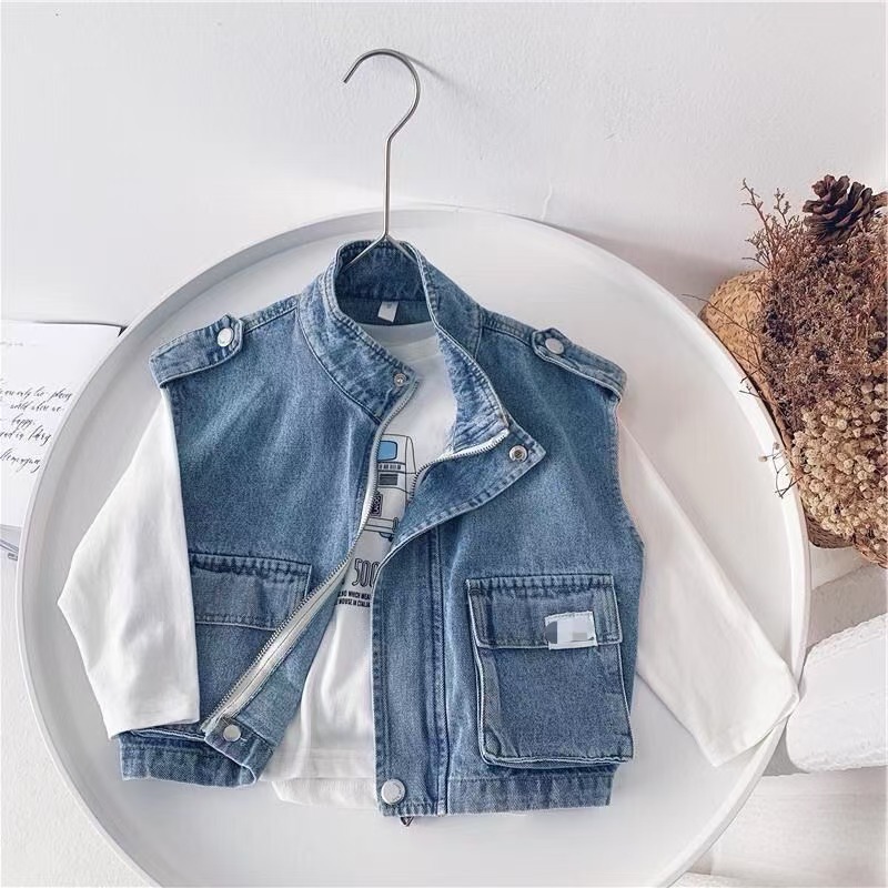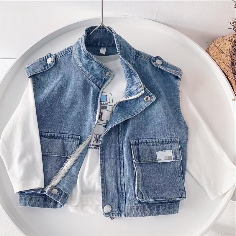 소년 조끼 봄 신작 아동 조끼 느슨한 소년 작업복 패션 데님 조끼 봄과 가을 스타일 어린이스토어 가기