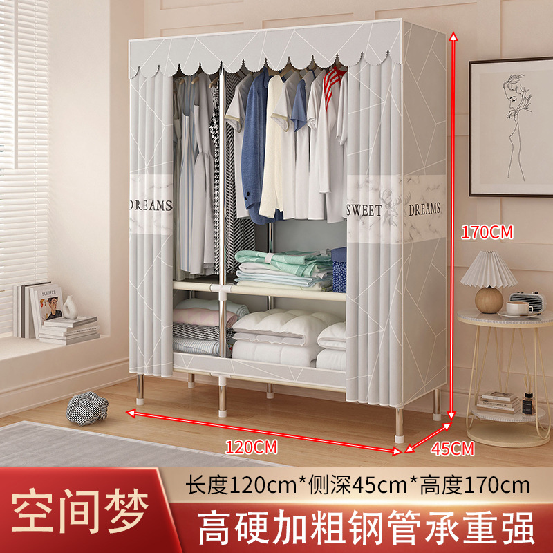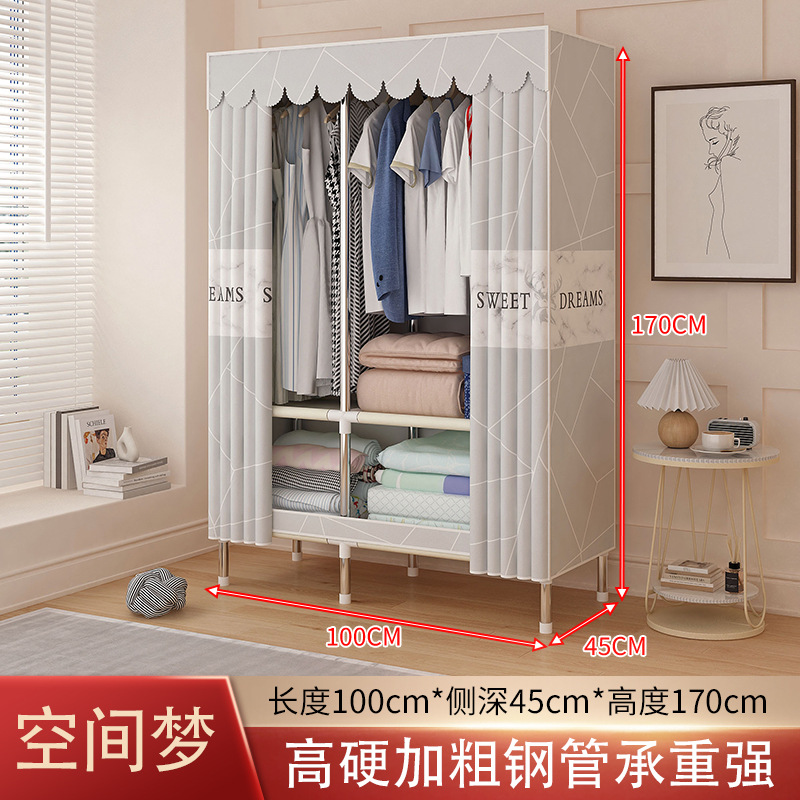 가정용 침실용 간이 옷장, 튼튼하고 내구성이 뛰어난 임대용 천 옷장, 옷걸이용 옷 보관을 위한 전체 강철 프레임 조립 옷장스토어 가기