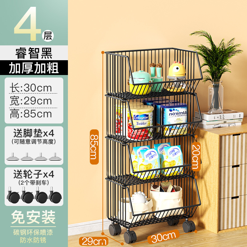 • 대형 검정색 [전체 강철 목재 대형 조리대 인출식 캐비닛] 4단 46*25*60(바구니 3개)