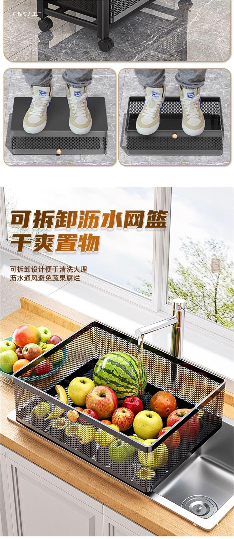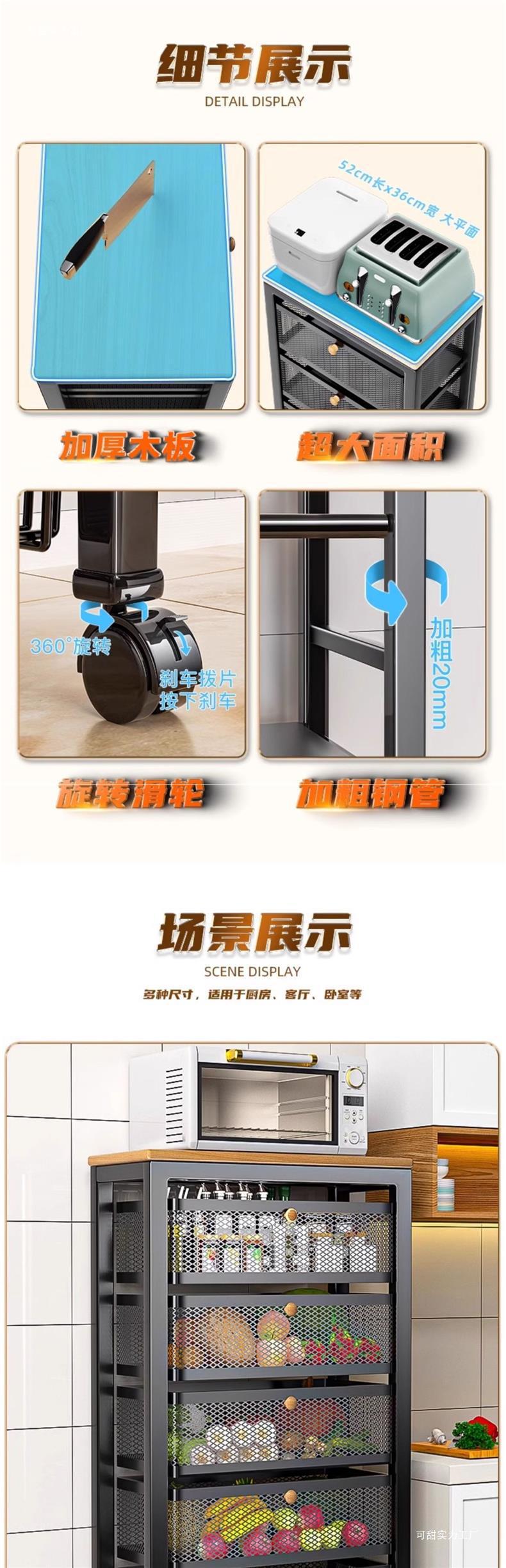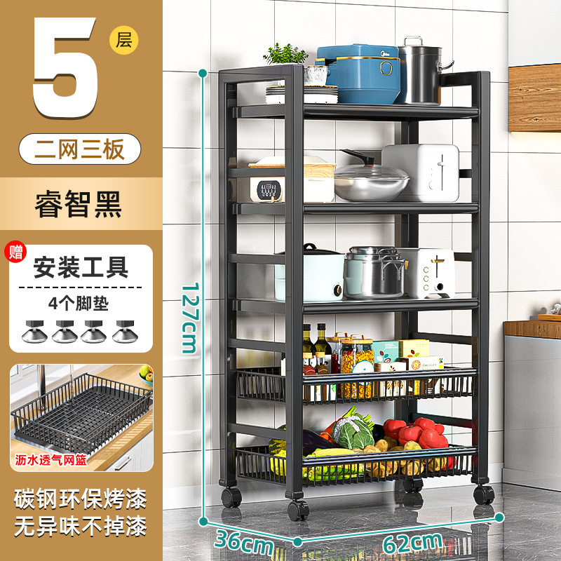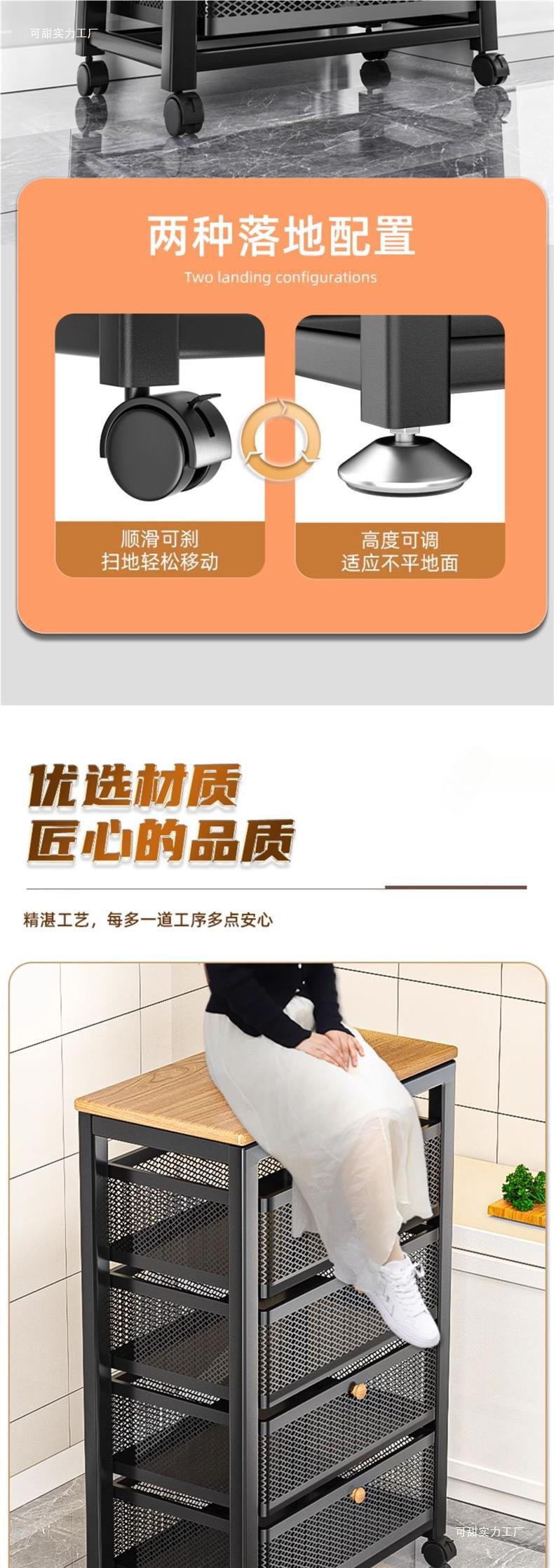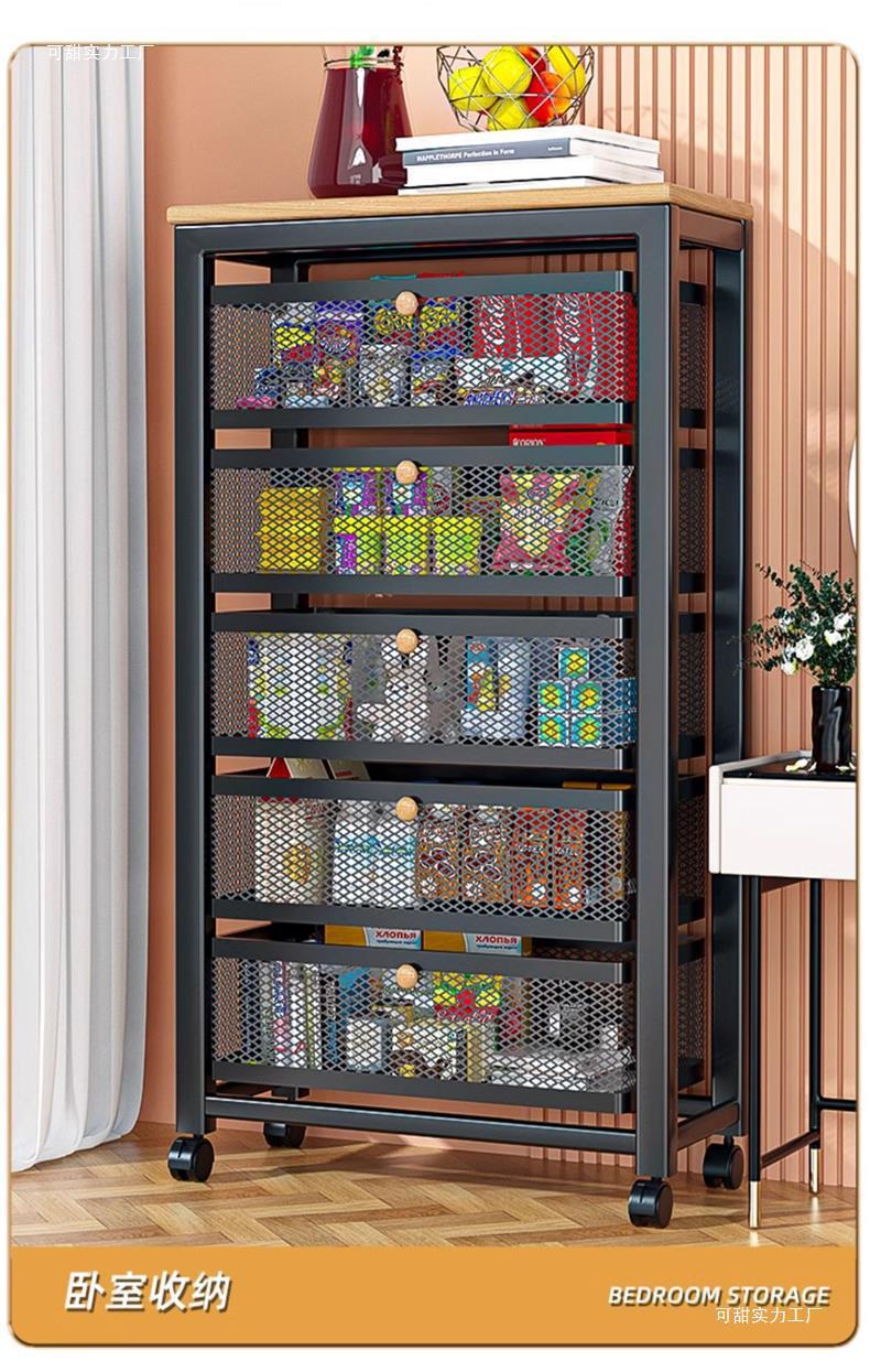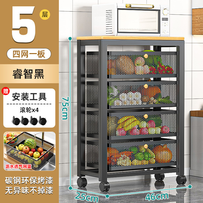 • 대형 검정색 [전체 강철 목재 대형 조리대 인출식 캐비닛] 5단 46*25*75(바구니 4개)