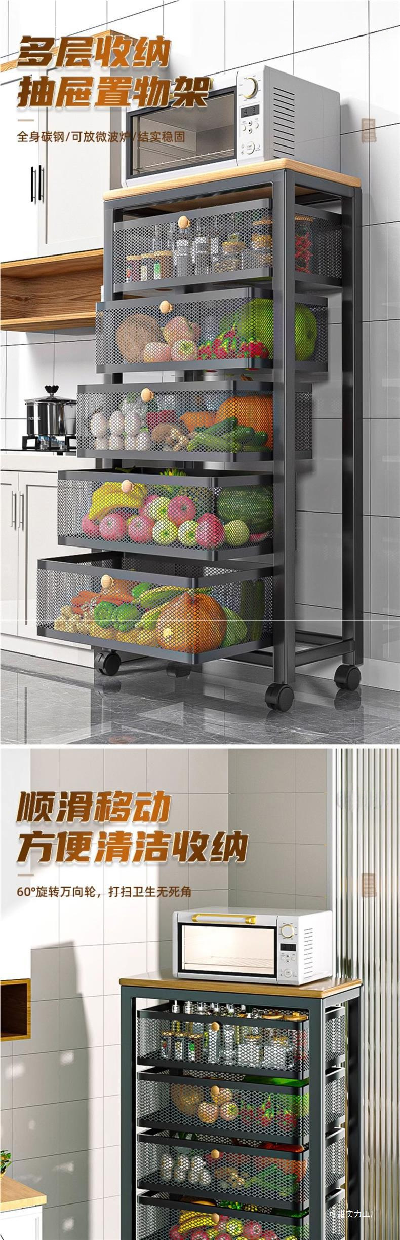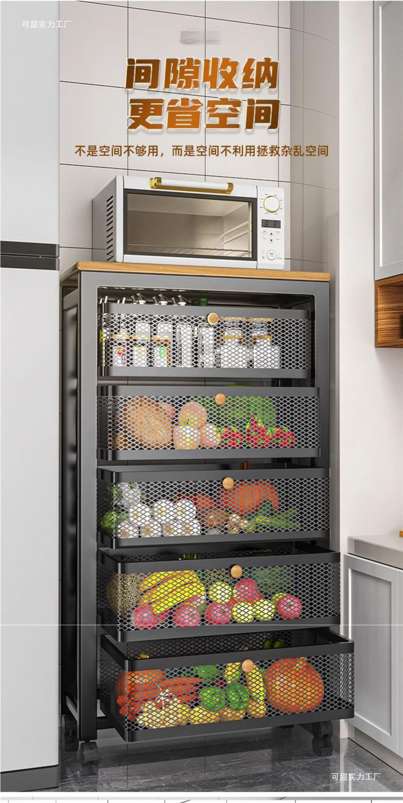 주방 야채 바구니 보관함 가정용 모바일 바닥 스탠딩 다층 과일 및 야채 보관 바구니 다기능 전자 레인지 선반