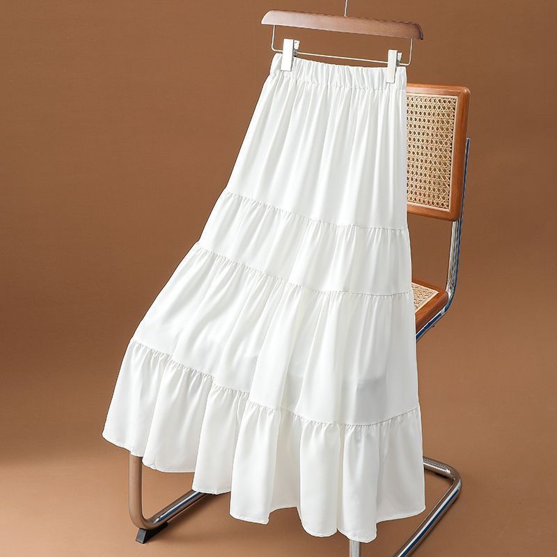 화이트 중간 길이 봄 여름 스커트 하이 웨이스트 슬리밍 2025 새로운 케이크 쁘띠 롱 스커트