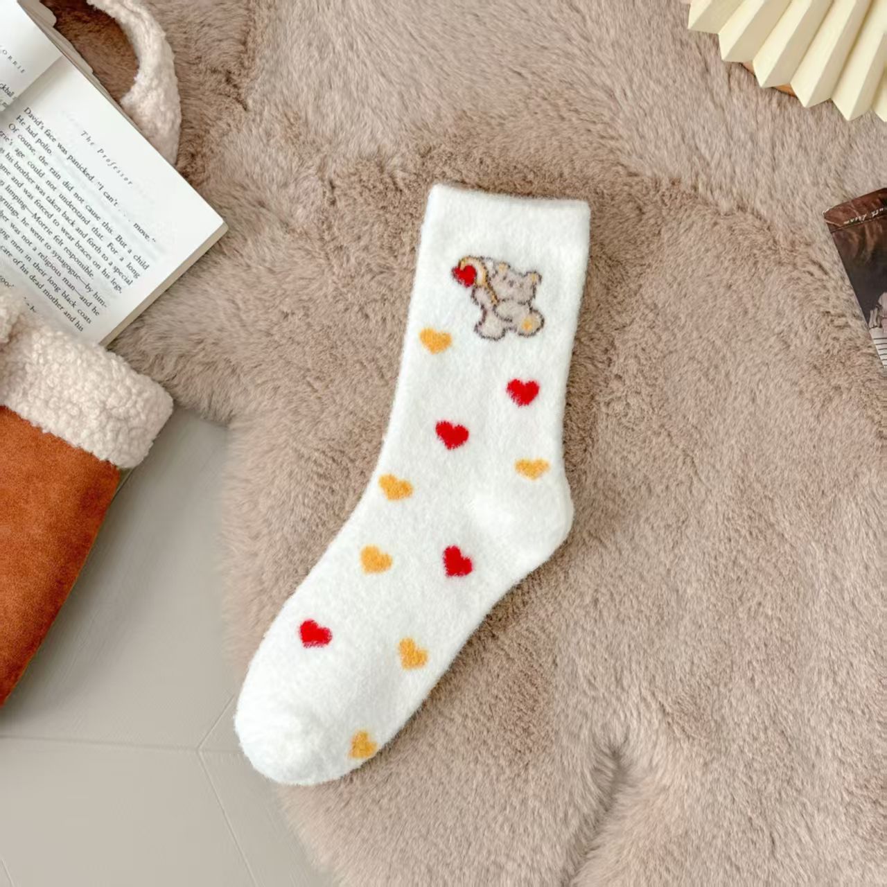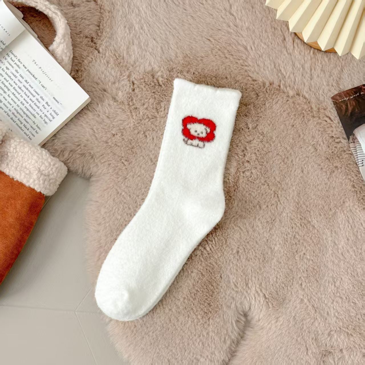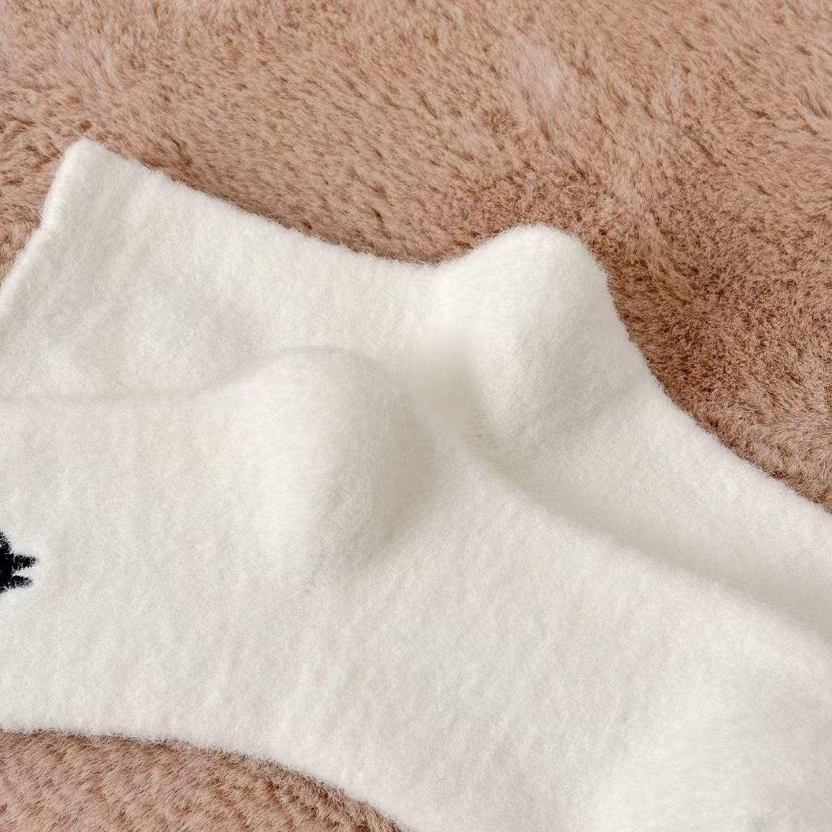 여성을위한 핑크색 달콤하고 귀여운 양말 겨울 모피 중간 튜브 양말 홈 슬리핑 양말 홈 플로어 양말 두꺼운 바닥 양말