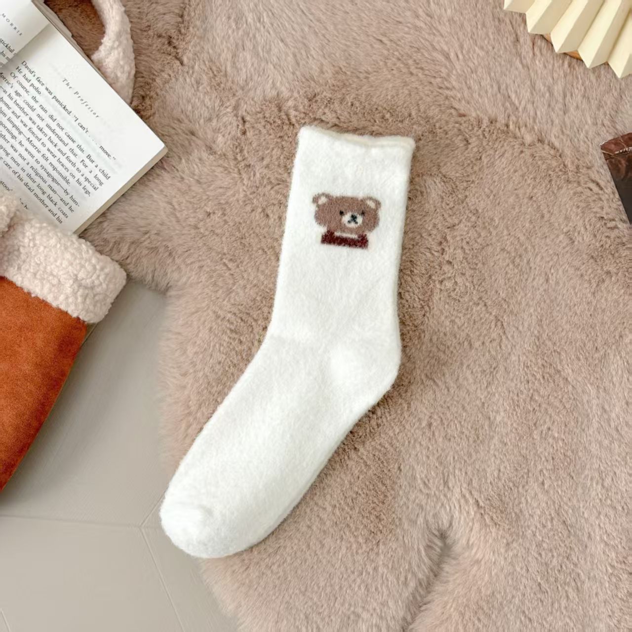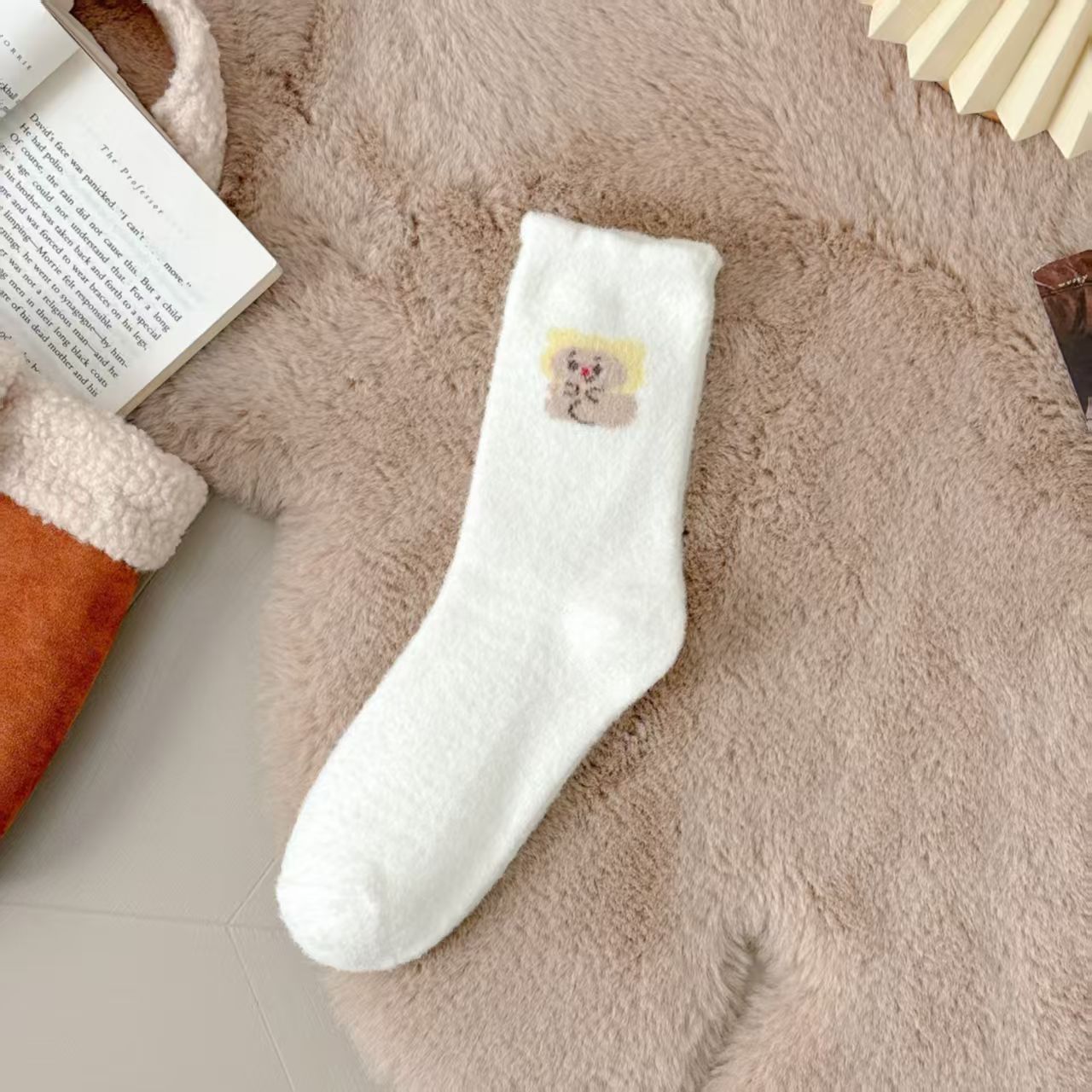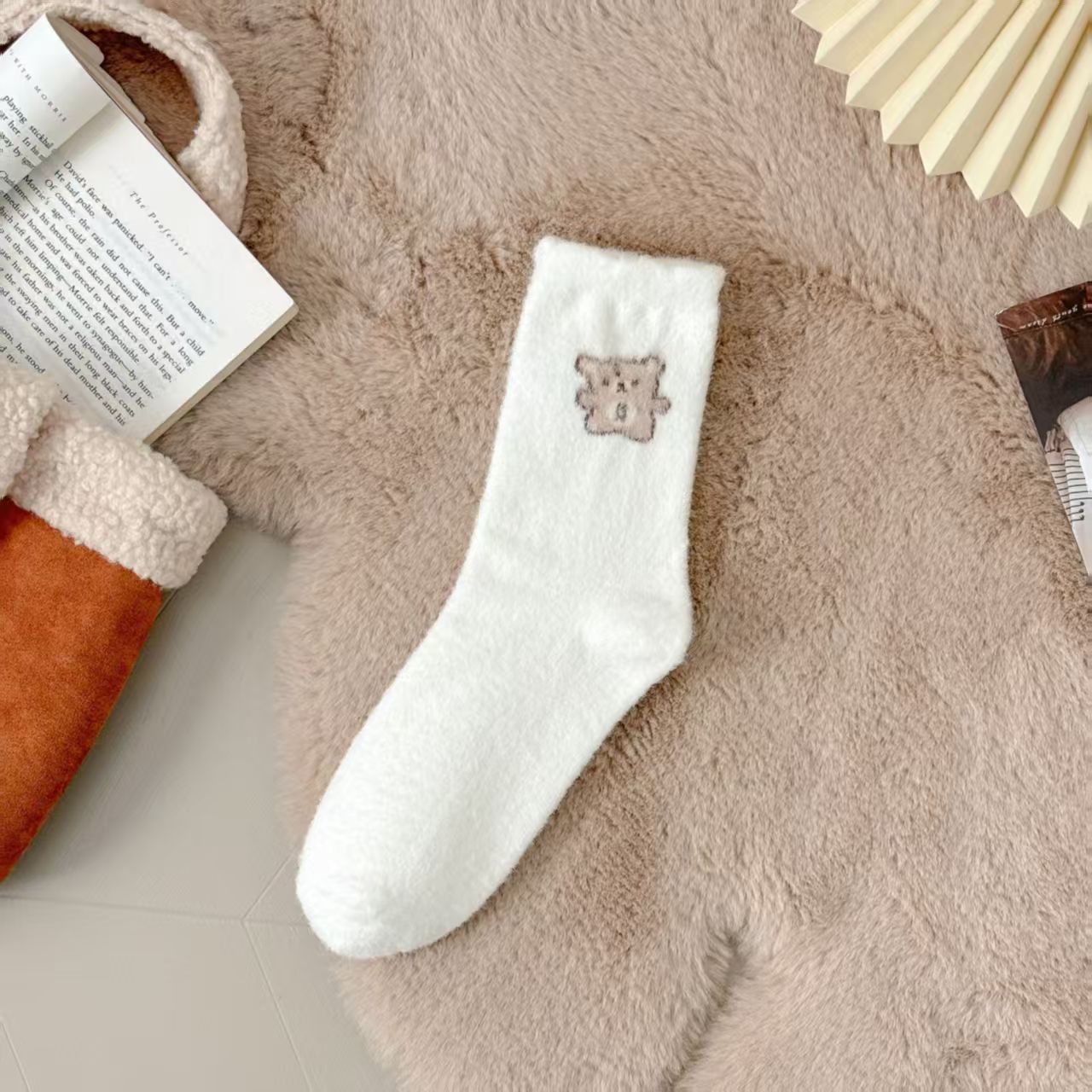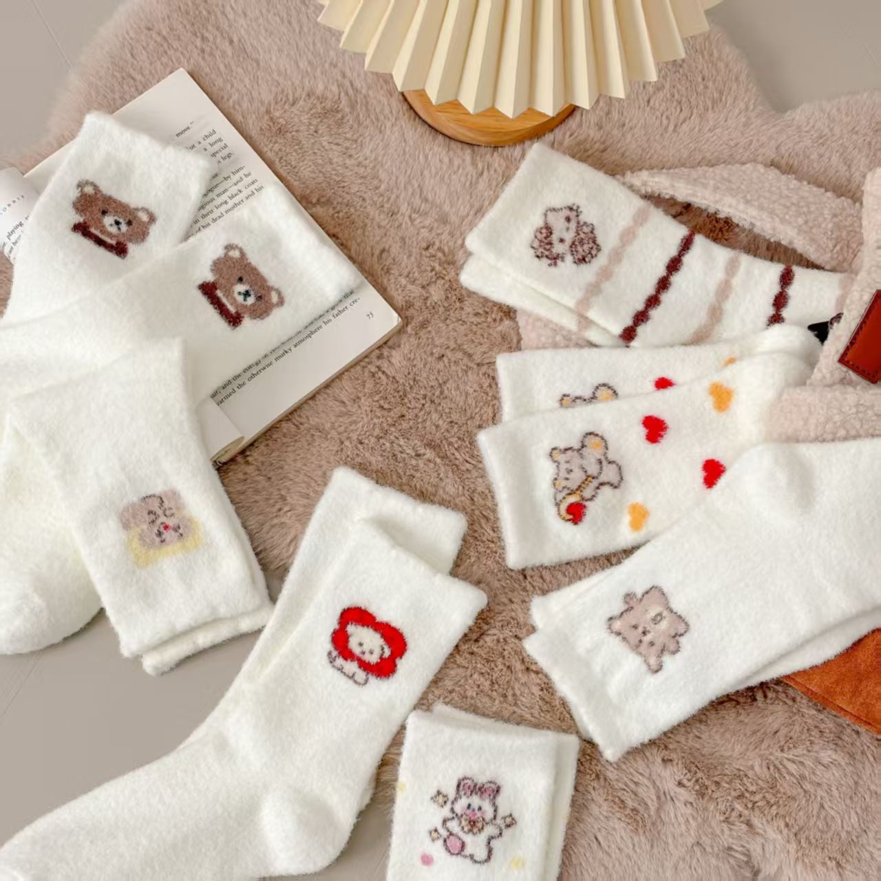 여성을위한 핑크색 달콤하고 귀여운 양말 겨울 모피 중간 튜브 양말 홈 슬리핑 양말 홈 플로어 양말 두꺼운 바닥 양말