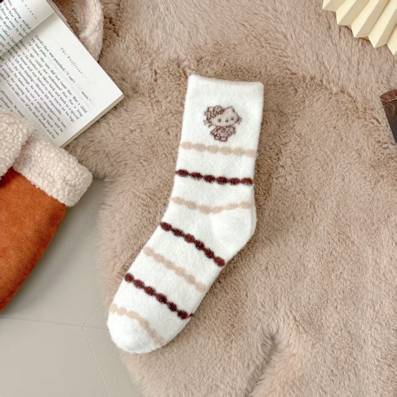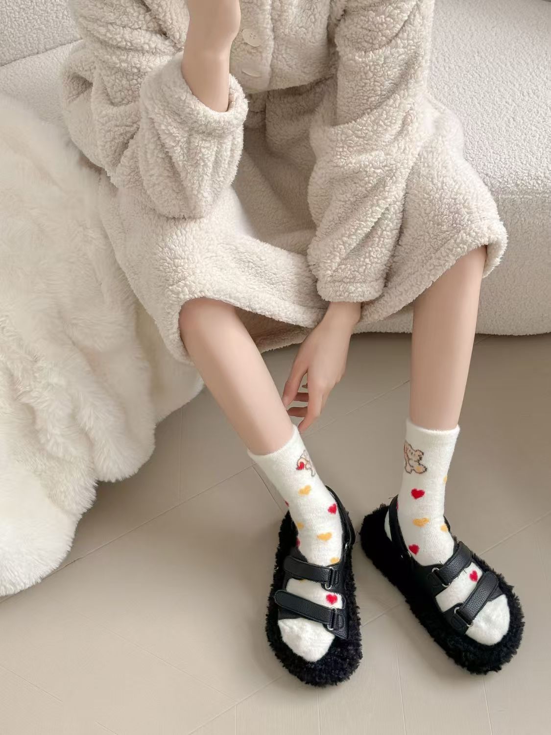 여성을위한 핑크색 달콤하고 귀여운 양말 겨울 모피 중간 튜브 양말 홈 슬리핑 양말 홈 플로어 양말 두꺼운 바닥 양말스토어 가기