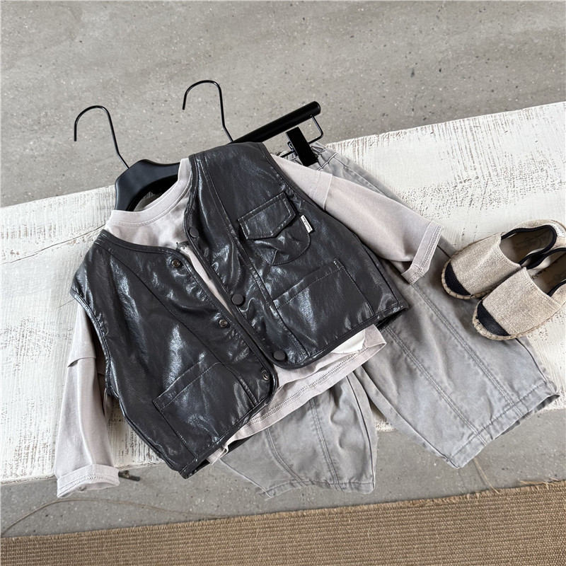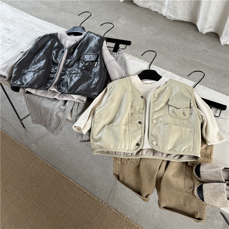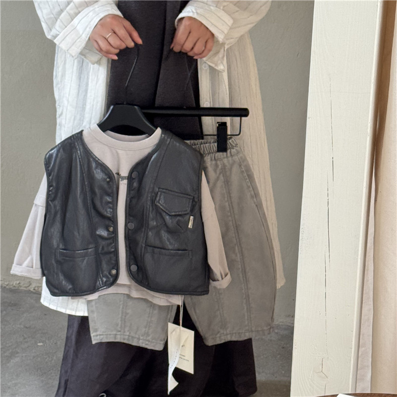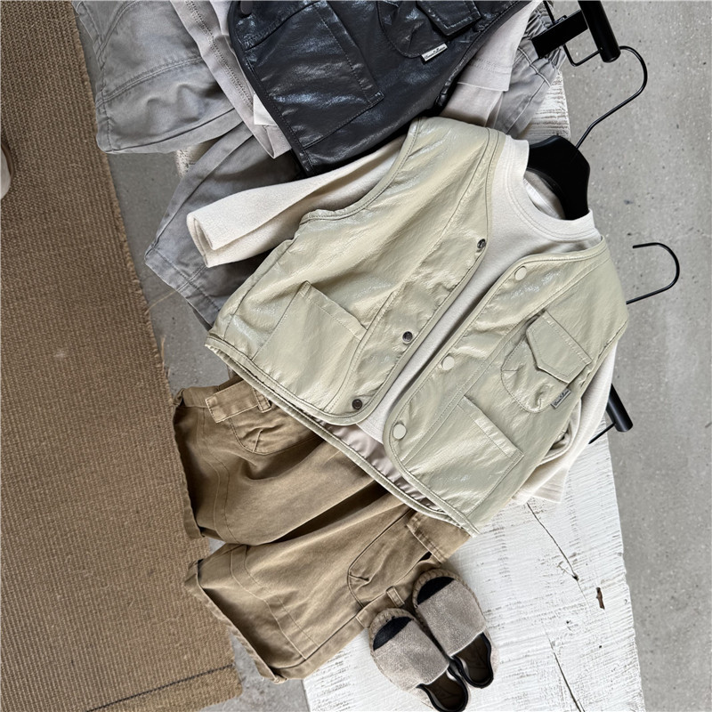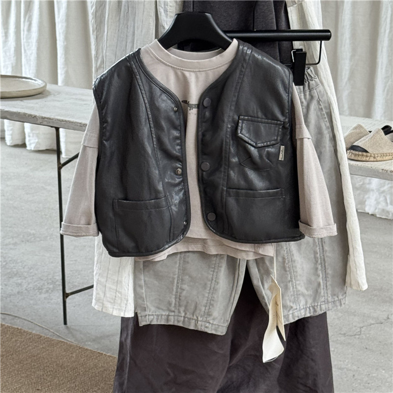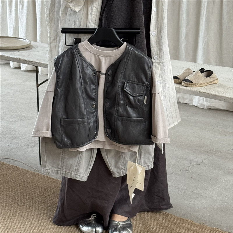 26년 초봄 신상 아동 가죽 조끼 남아 여아 한국 스타일 외출용 유아 가죽 조끼 트렌디스토어 가기