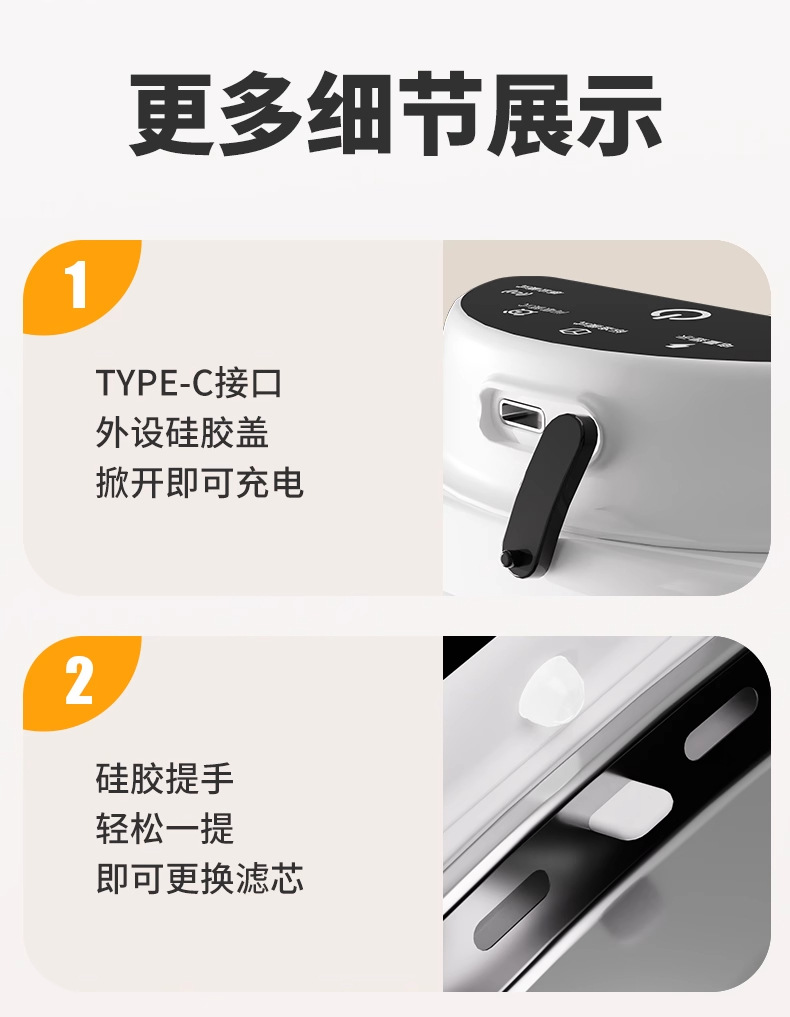 • 5200 mAh [4리터] UVC 스마트 살균 모델에는 필터 요소 1개가 포함되어 있으며 60일의 긴 배터리 수명과 99%의 살균율을 제공합니다.
