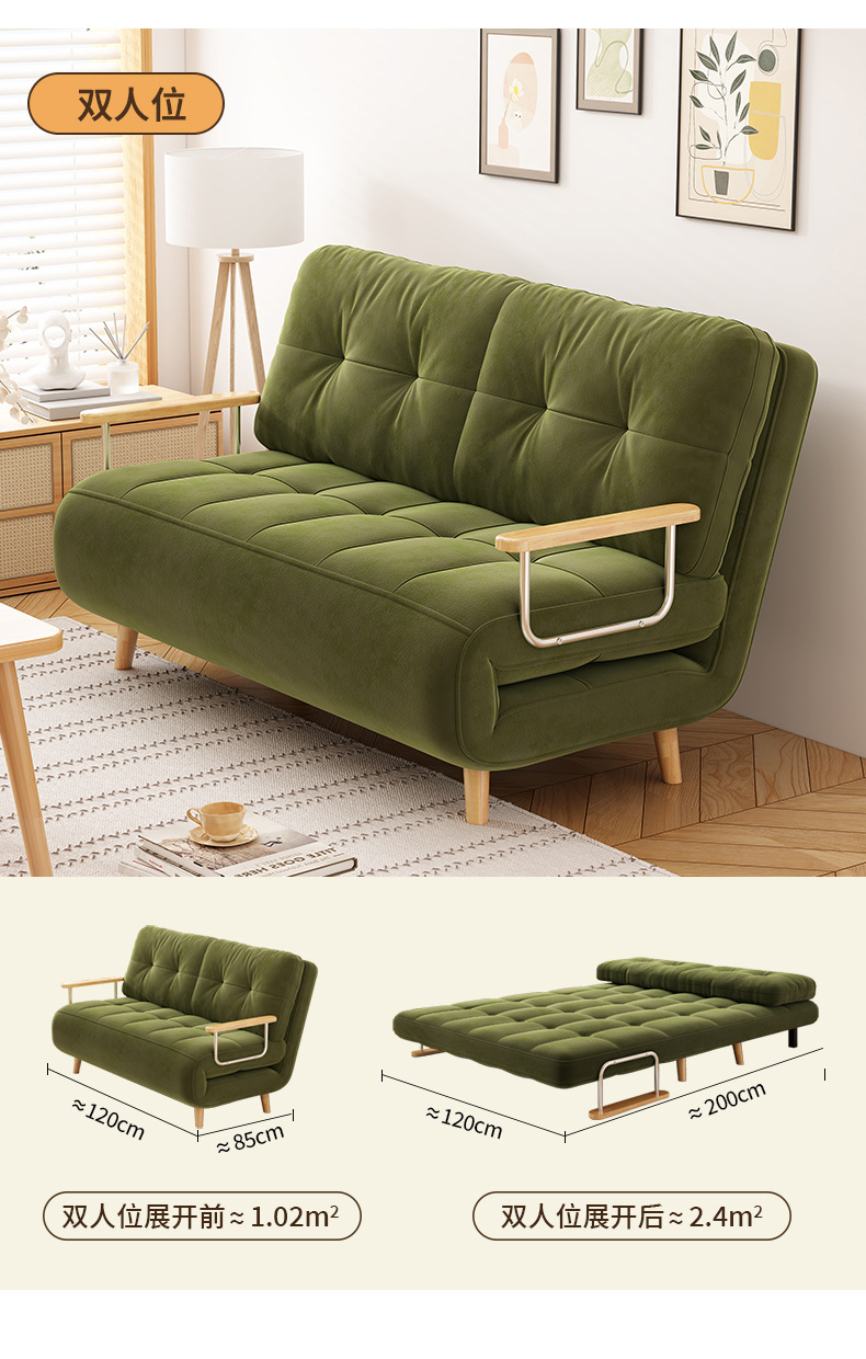 2025 새로운 소파 베드 로그 싱글 더블 작은 아파트 거실 발코니 접이식 텔레스코픽 소파 베드 이중 목적스토어 가기