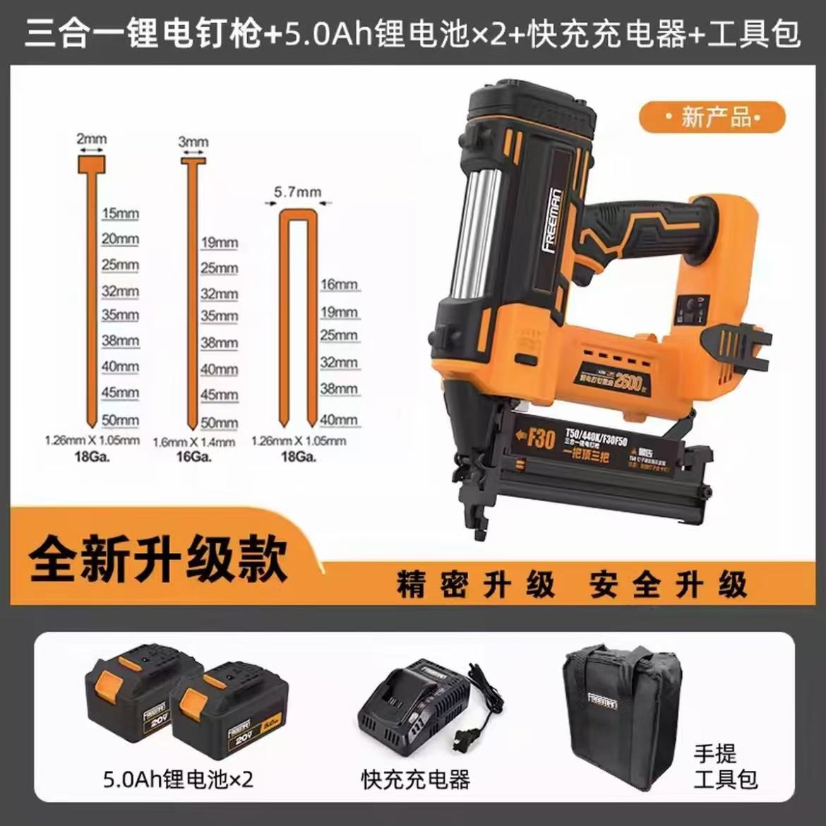Fuli Gate 충전식 에어 네일 건 F30F50T50440K 목공 3-in-one 리튬 배터리 스트레이트 네일 코드 네일 건