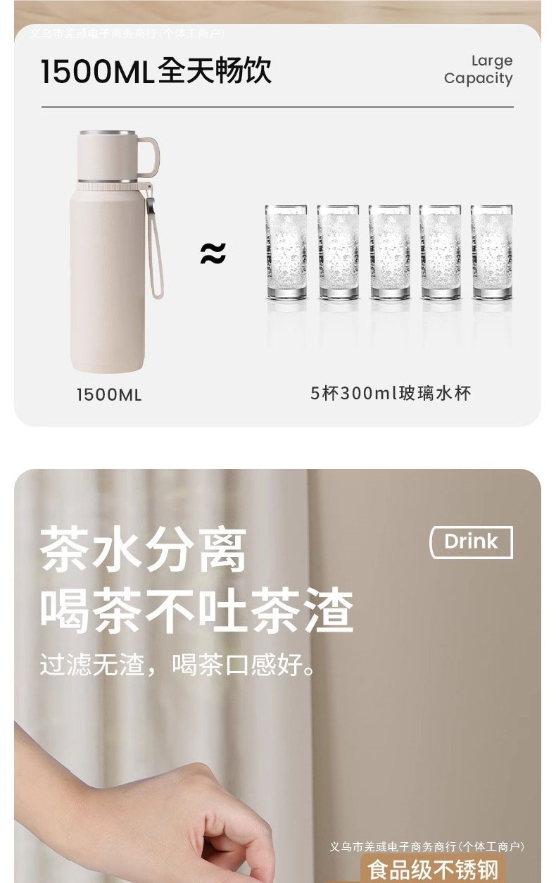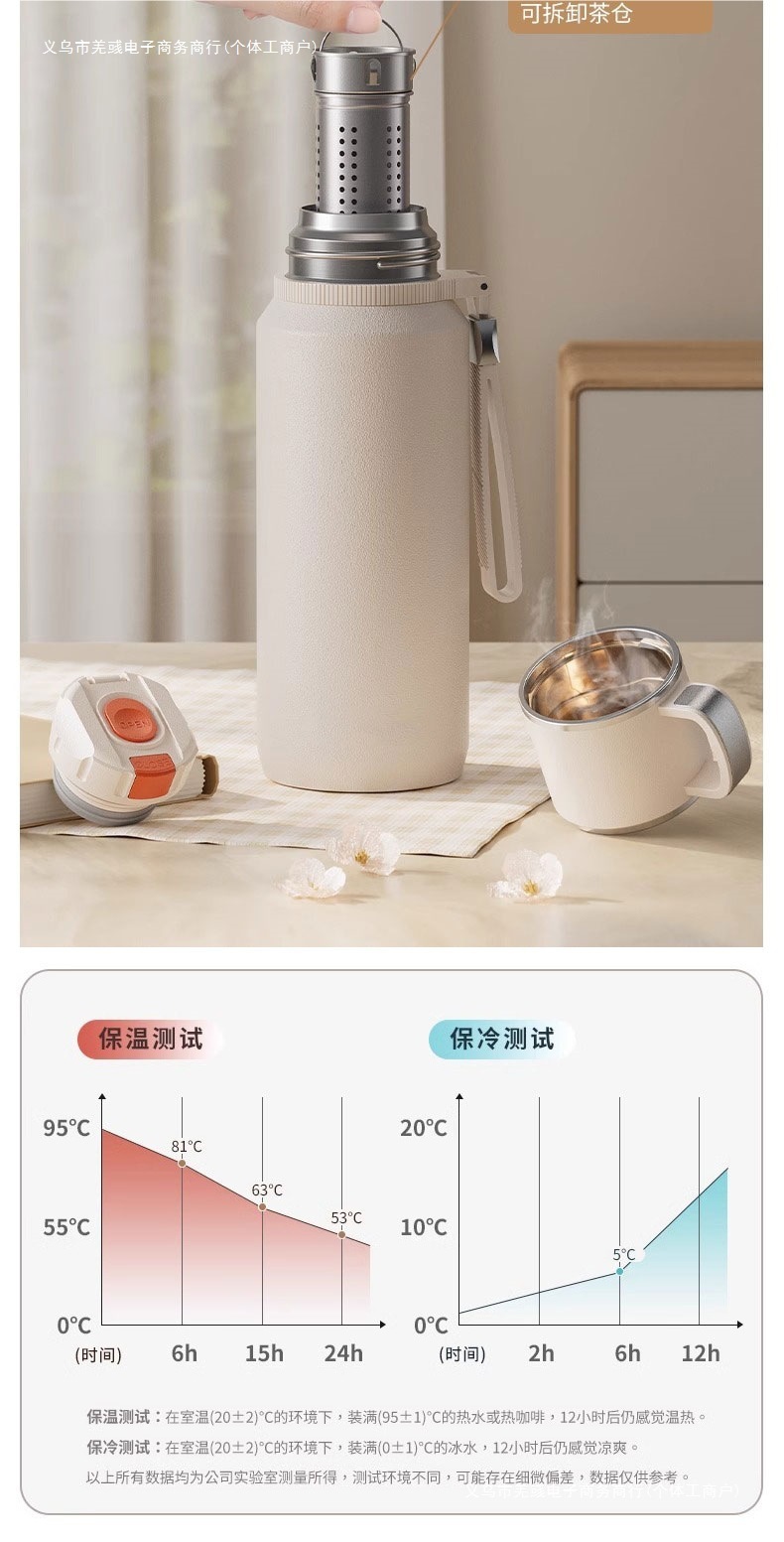 남성과 여성을 위한 대용량 보온병 컵 차와 물 분리를 위한 24개의 새로운 주전자 컵, 대형 야외 등산을 위해 휴대 가능스토어 가기