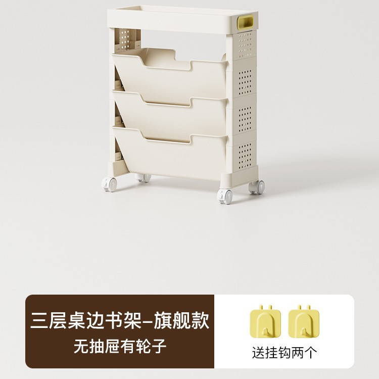 • 바퀴가 달린 서랍이 없는 테이블 옆 책장 3단 모바일 모델