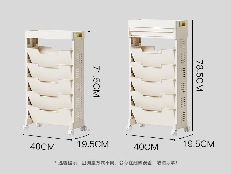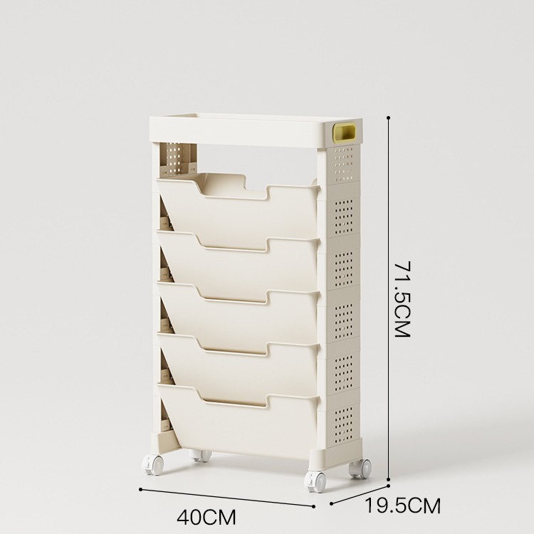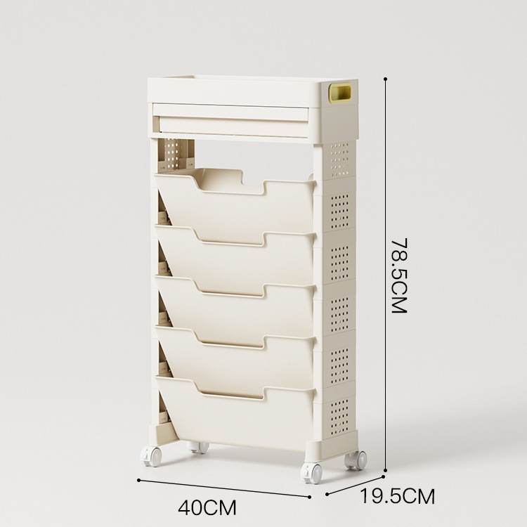 • 서랍과 바퀴가 달린 측면 책장 5단 이동식 프레임