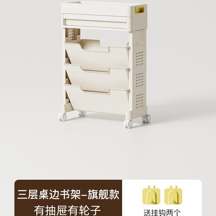 • 서랍과 바퀴가 있는 테이블 옆 책장 3단 이동식 모델