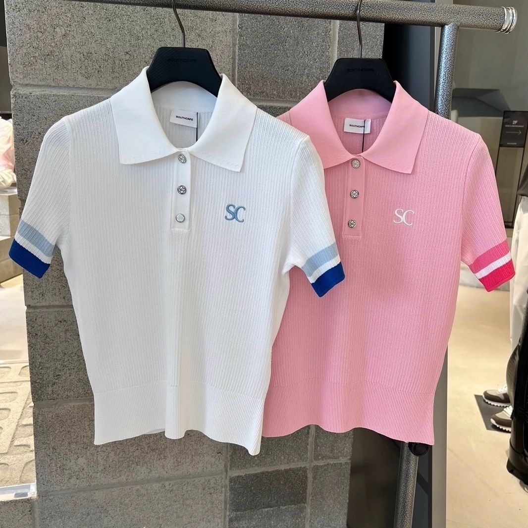 2024 골프웨어 여성 패션 라펠 하프 버튼 스웨터 야외 스포츠 기질 연령 감소 반팔스토어 가기