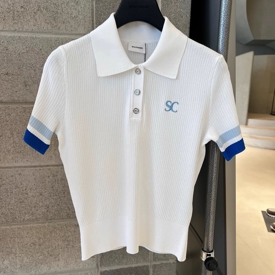 2024 골프웨어 여성 패션 라펠 하프 버튼 스웨터 야외 스포츠 기질 연령 감소 반팔