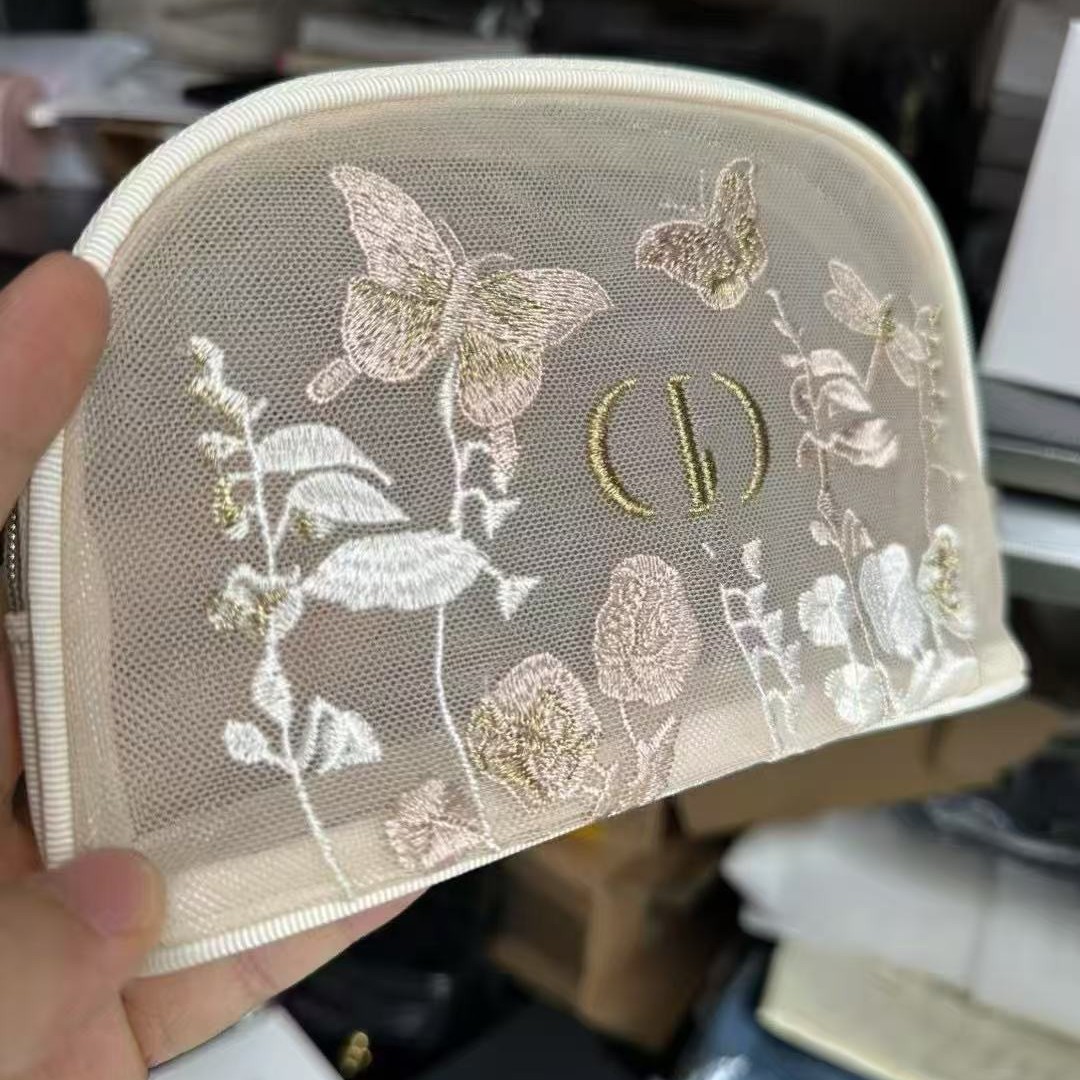 새로운 나비 자수 쉘 화장품 가방 메쉬 화장품 가방 편리한 세면 용품 가방 세련된 여성 가방 보관