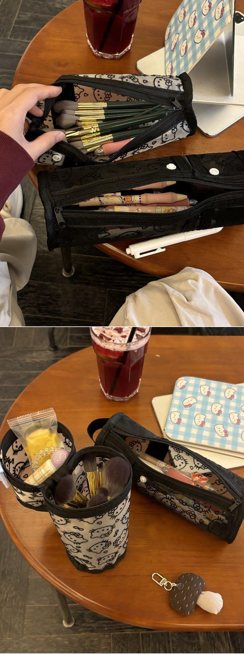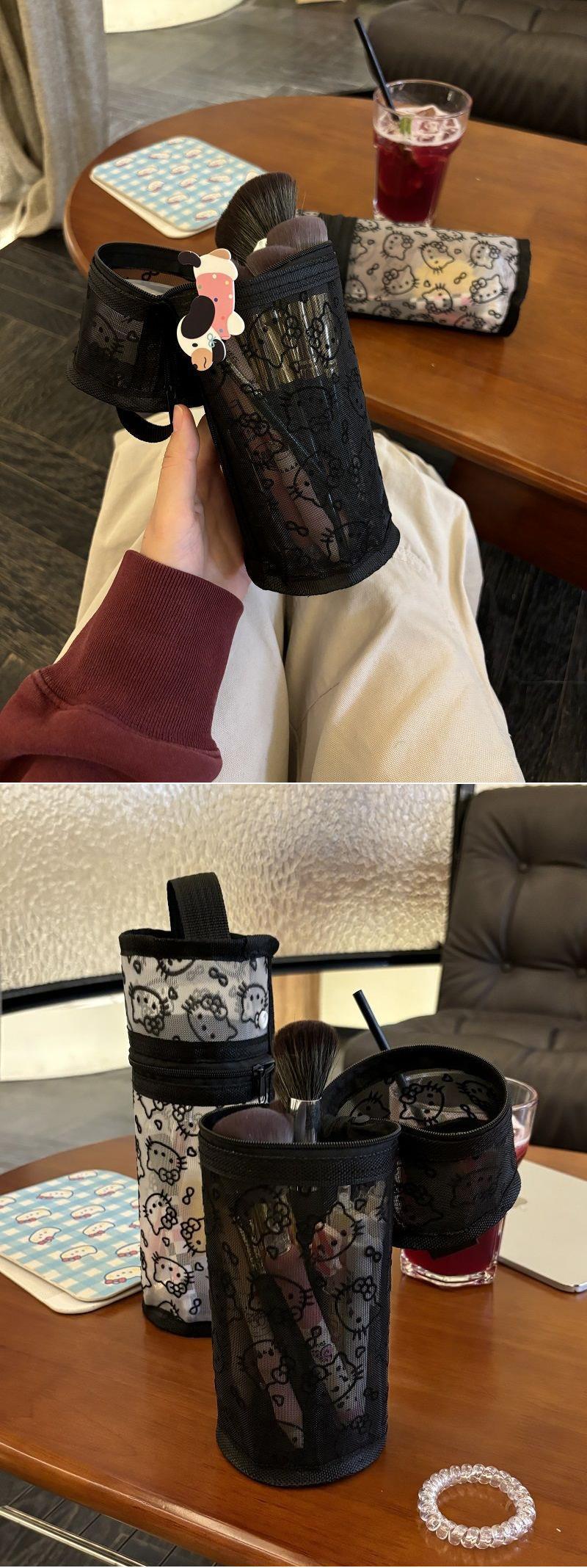 다용도 대용량 메쉬 휴대용 버킷 펜 가방 화장품 가방 브러쉬 가방 휴대용 스탠딩 및 먼지 방지