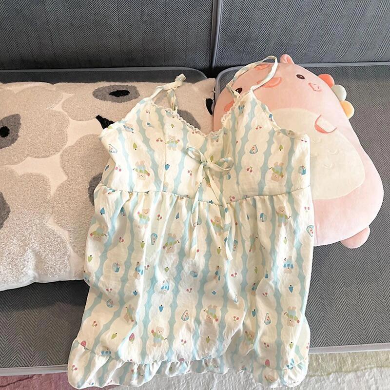 여성용 가슴 패드가 있는 순수한 파란색 잠옷, 클라우드 서스펜더 반바지, 투피스 세트, 귀여운 홈웨어스토어 가기