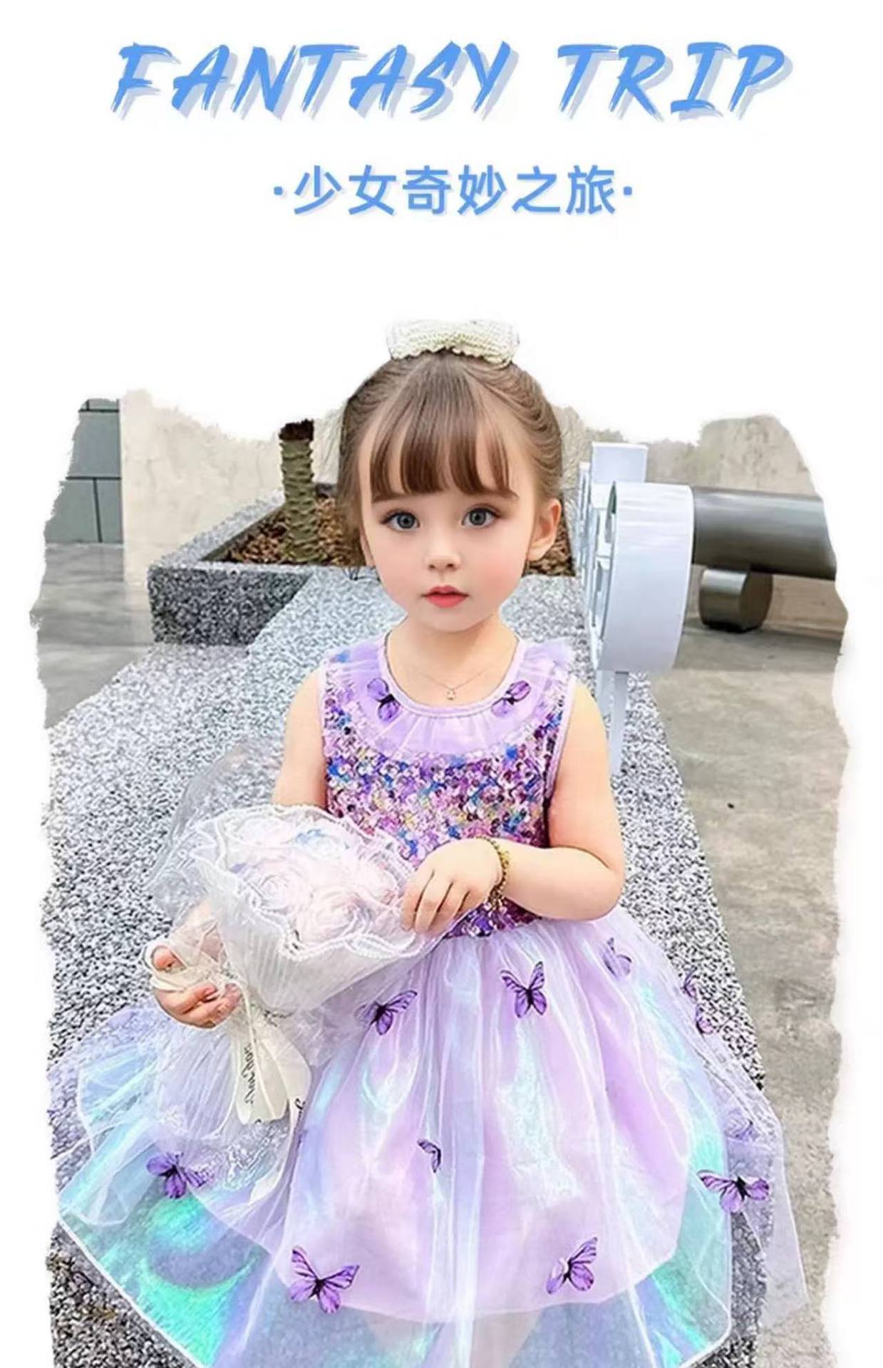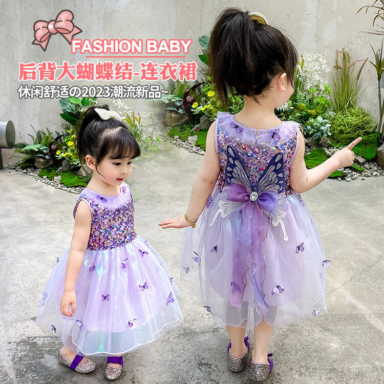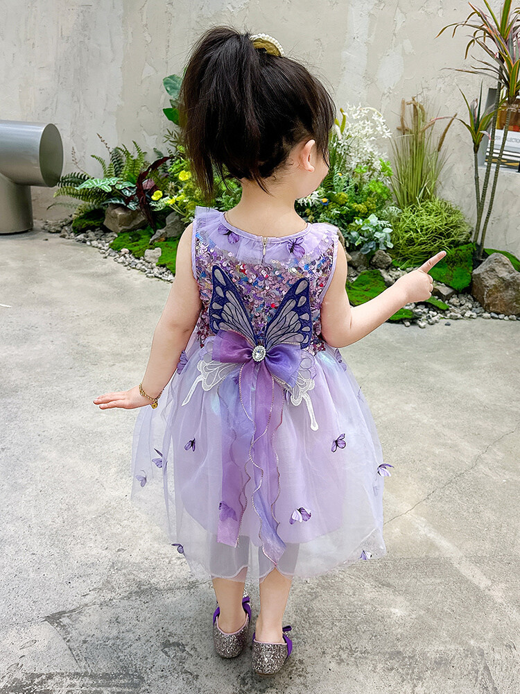 여자 공주 드레스 퍼프 스커트 2025 여름 패션 드레스 여자 하이 엔드 나비 날개 스팽글 드레스스토어 가기