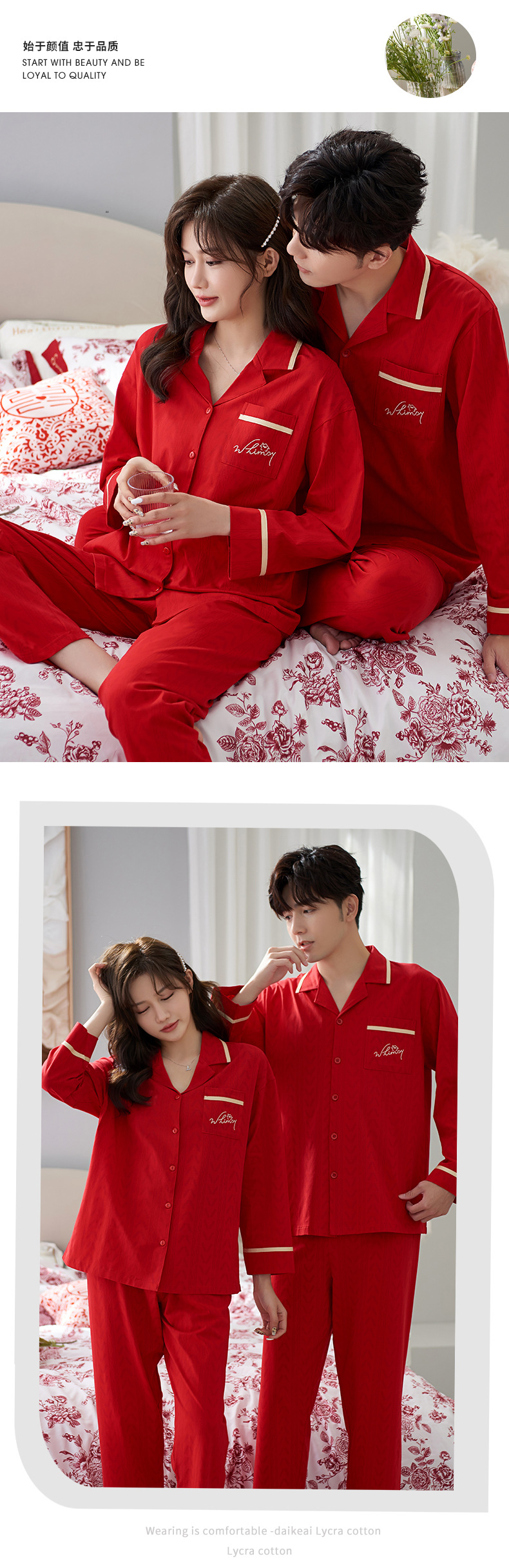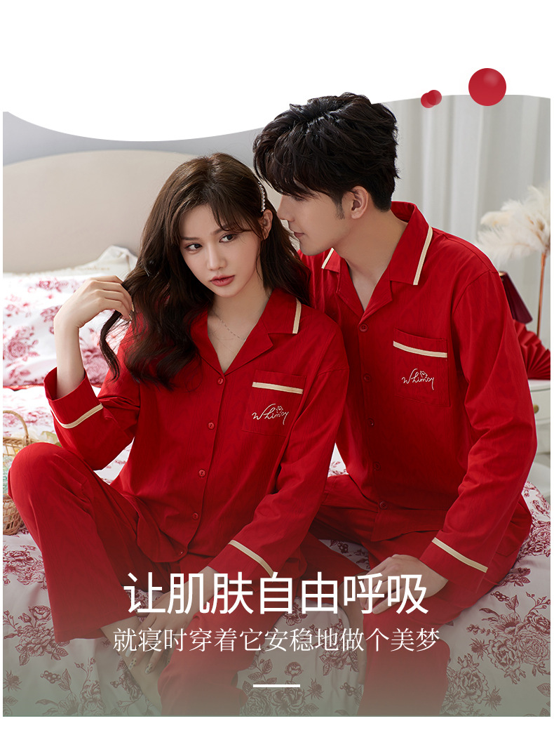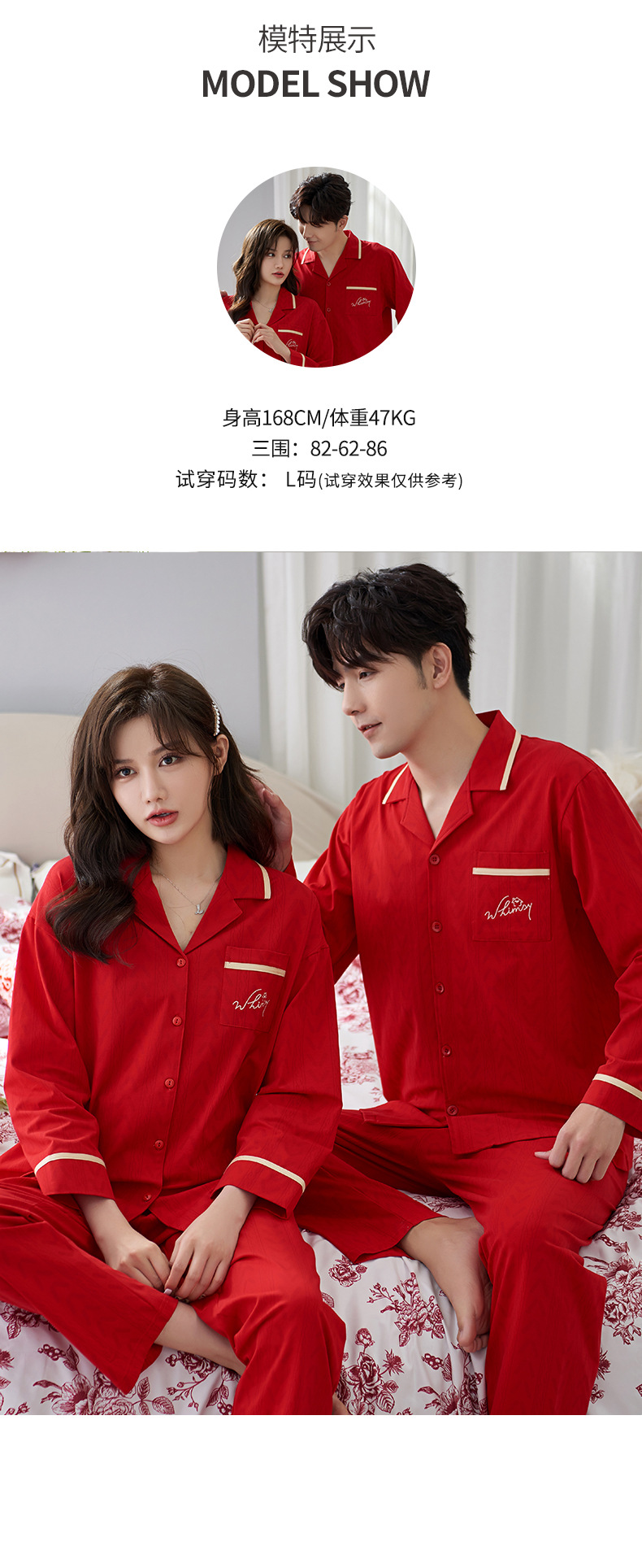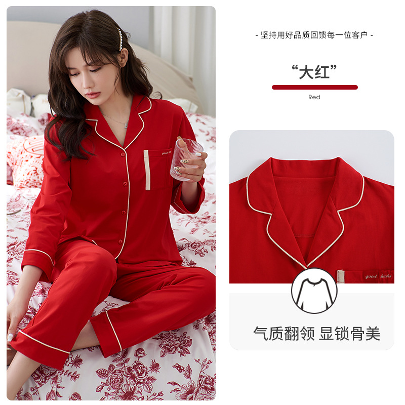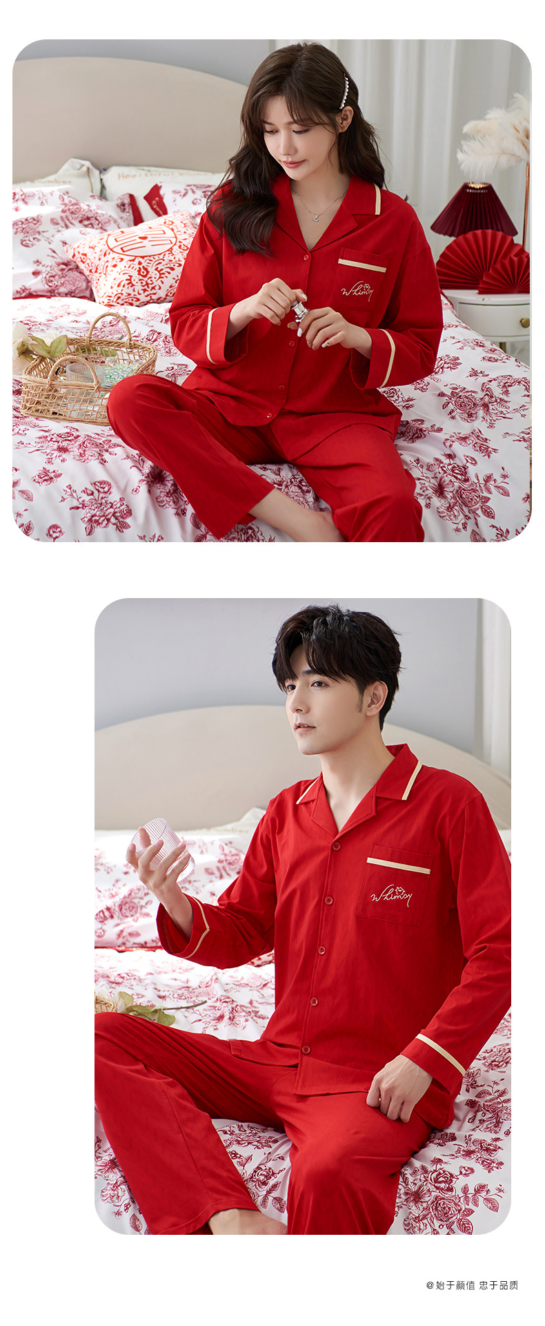 여성용 커플 잠옷 봄, 가을 순면 긴팔 빨간색 결혼식 신혼 신부의 탄생년 남성용 홈웨어 세트스토어 가기