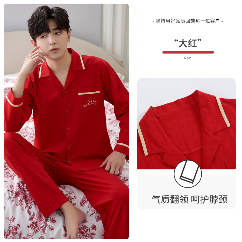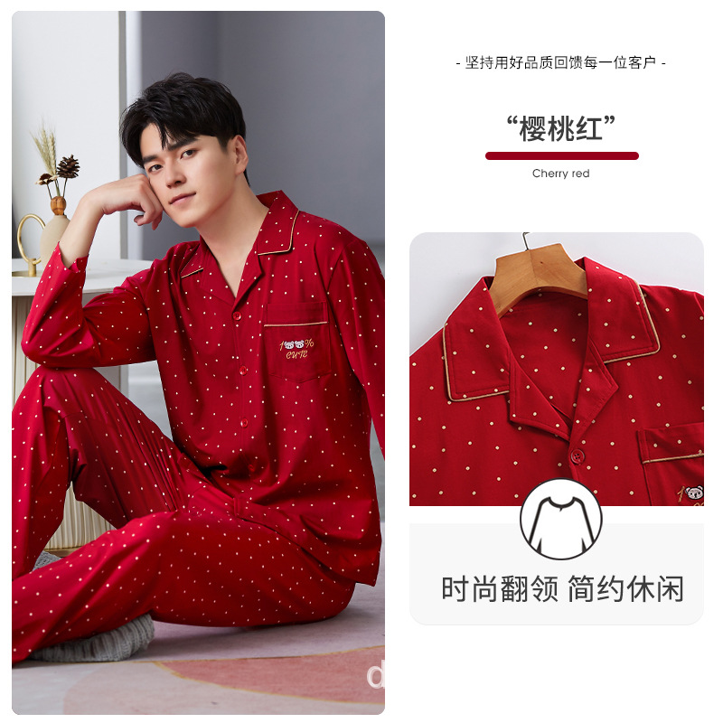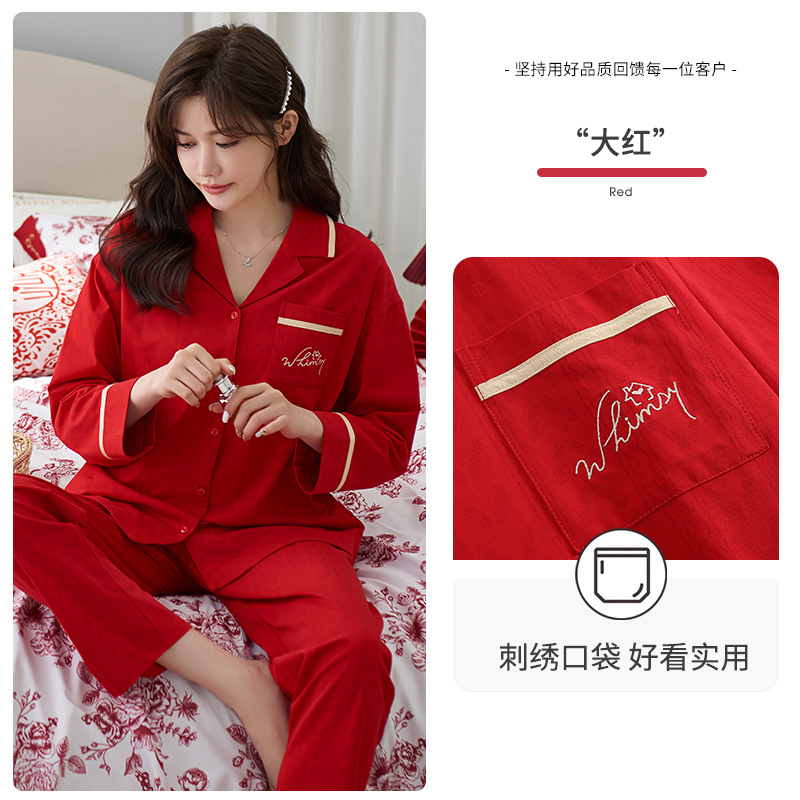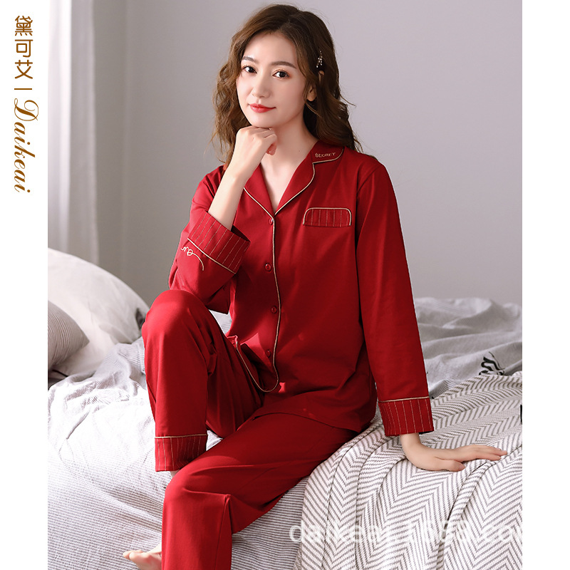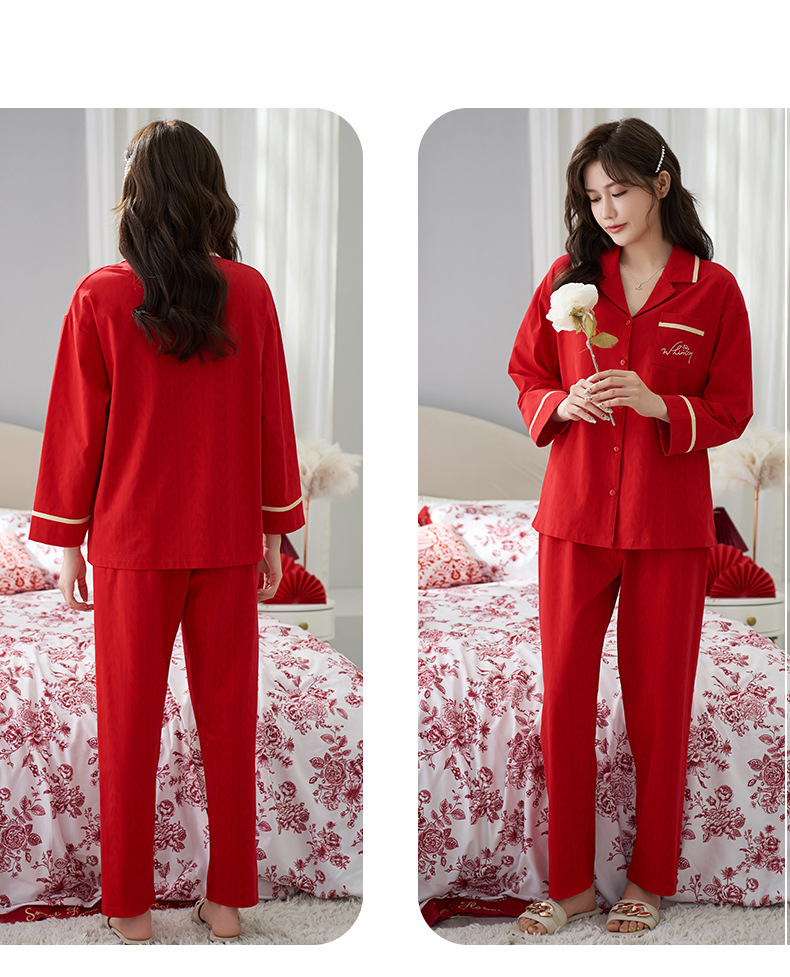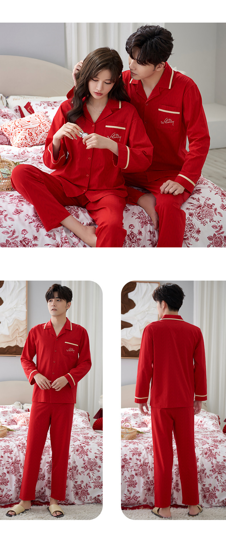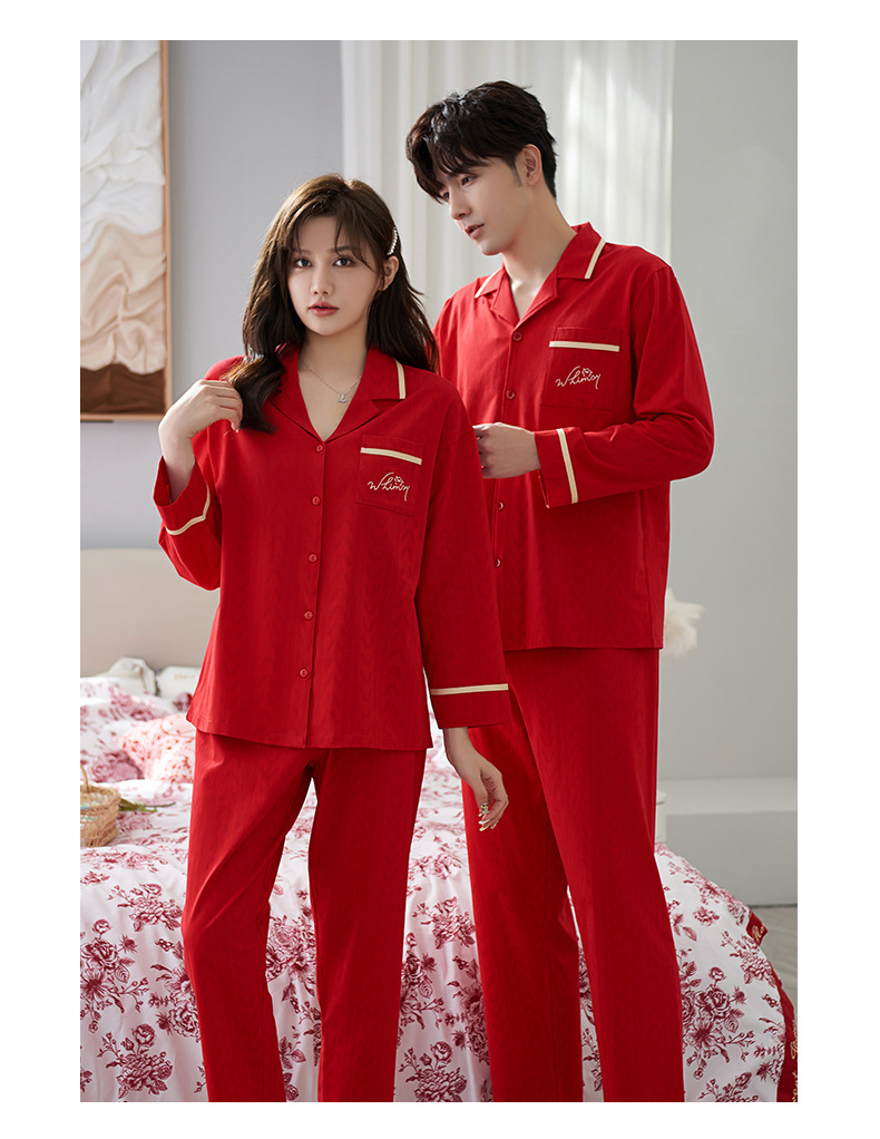 여성용 커플 잠옷 봄, 가을 순면 긴팔 빨간색 결혼식 신혼 신부의 탄생년 남성용 홈웨어 세트스토어 가기