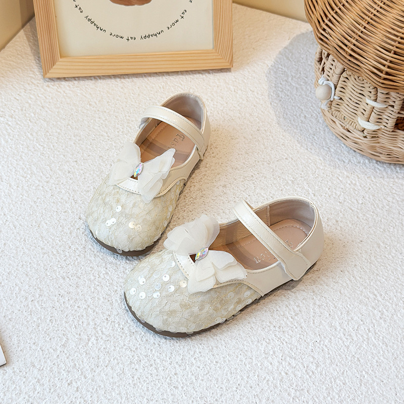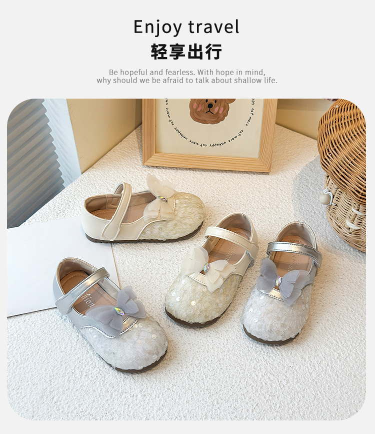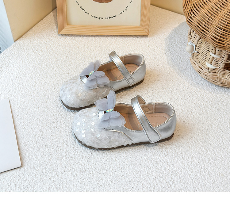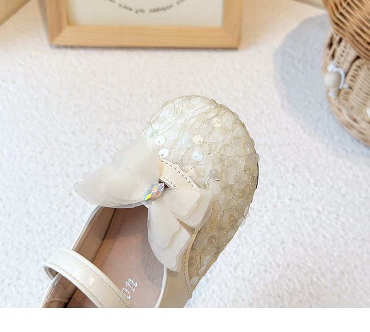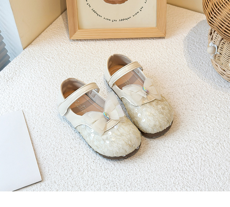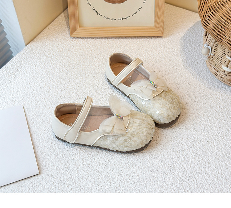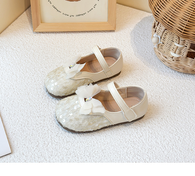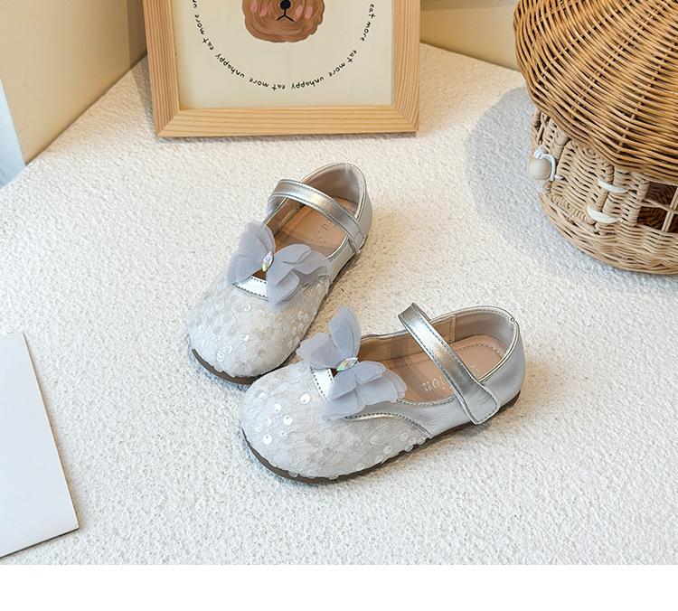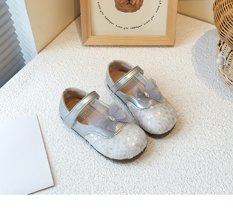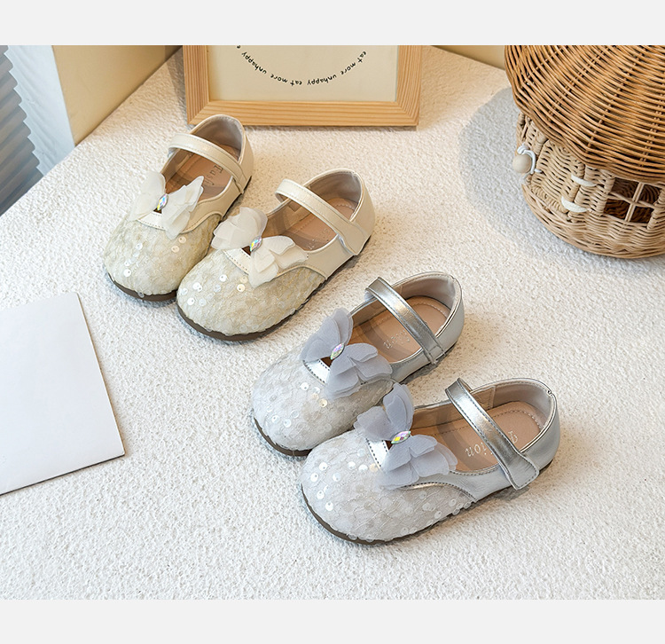 2025 새로운 가을 어린이 신발 어린 소녀 달콤한 활 공주 신발 한국 스타일 스팽글 소녀 가죽 신발스토어 가기