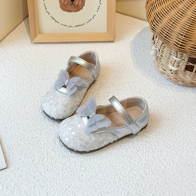 2025 새로운 가을 어린이 신발 어린 소녀 달콤한 활 공주 신발 한국 스타일 스팽글 소녀 가죽 신발