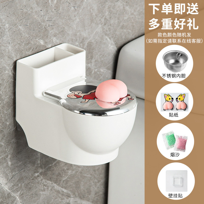 뚜껑이 있는 만화 벽걸이형 재떨이 변기, 탈부착 가능한 재미있는 사무실 조리대 변기, 욕실 이중 목적 수납 공간스토어 가기