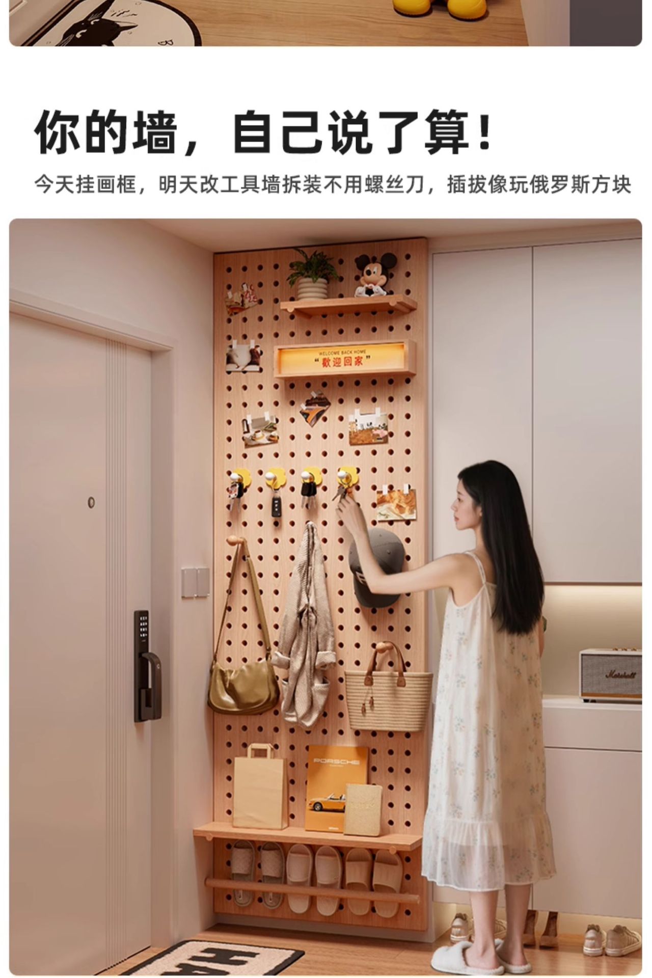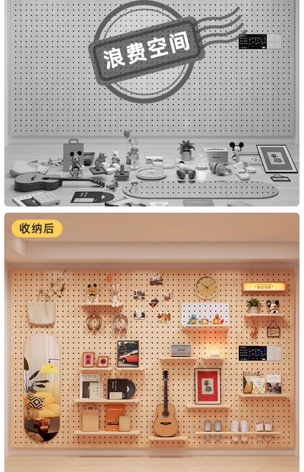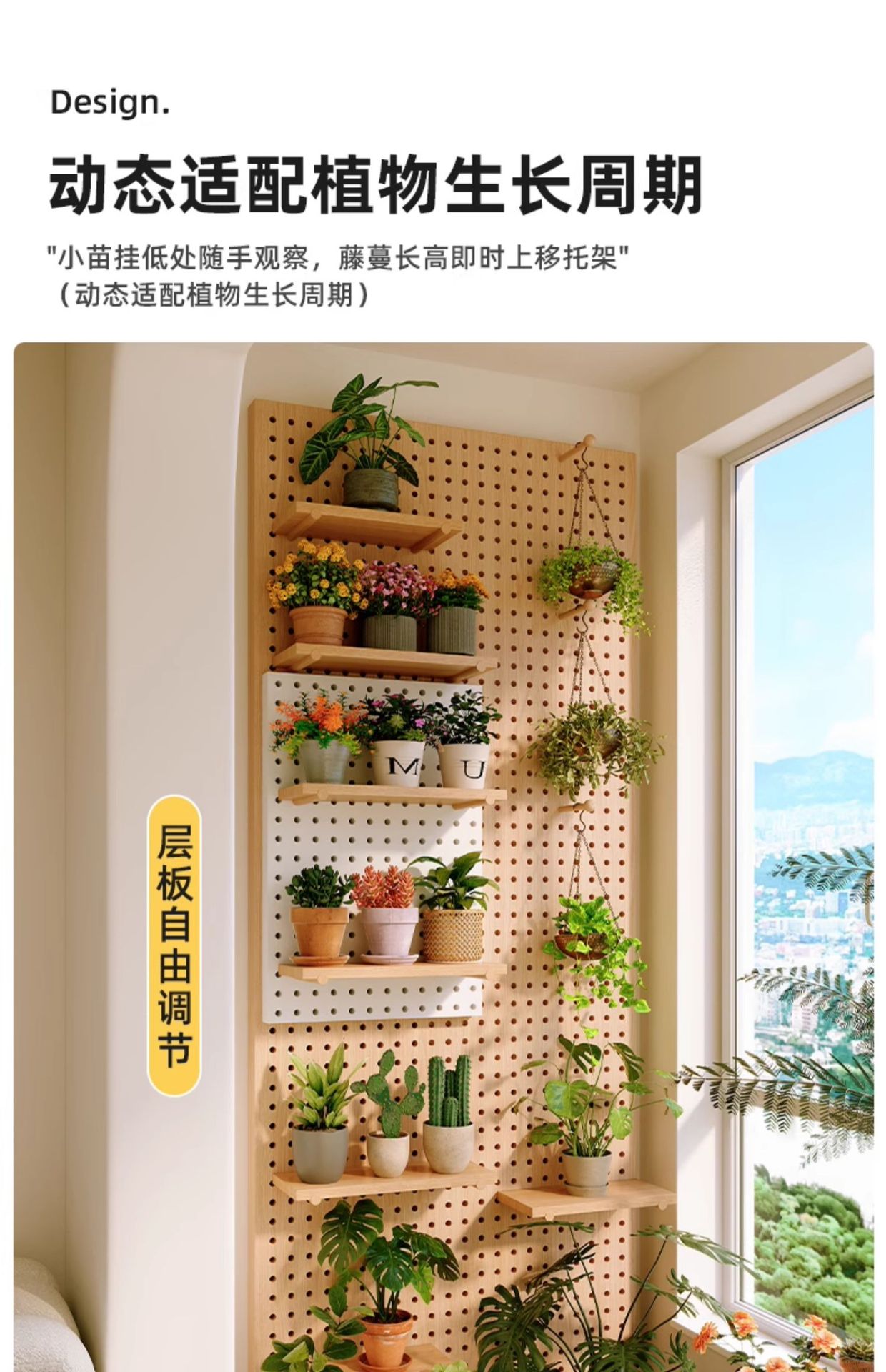 단단한 나무 구멍 보드 보관 랙 발코니 스타일 벽걸이 옷걸이 통합 벽 꽃 스탠드 녹색 식물 디스플레이 스탠드