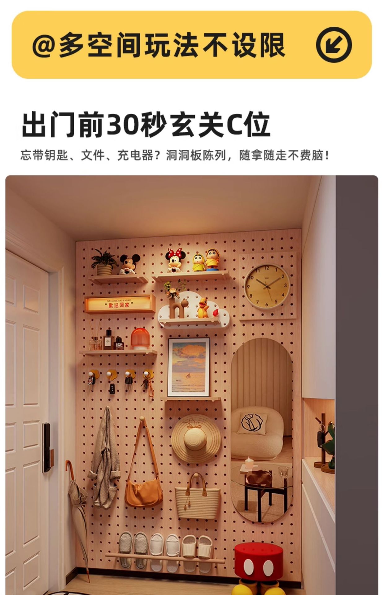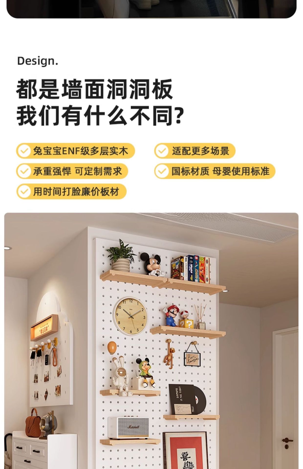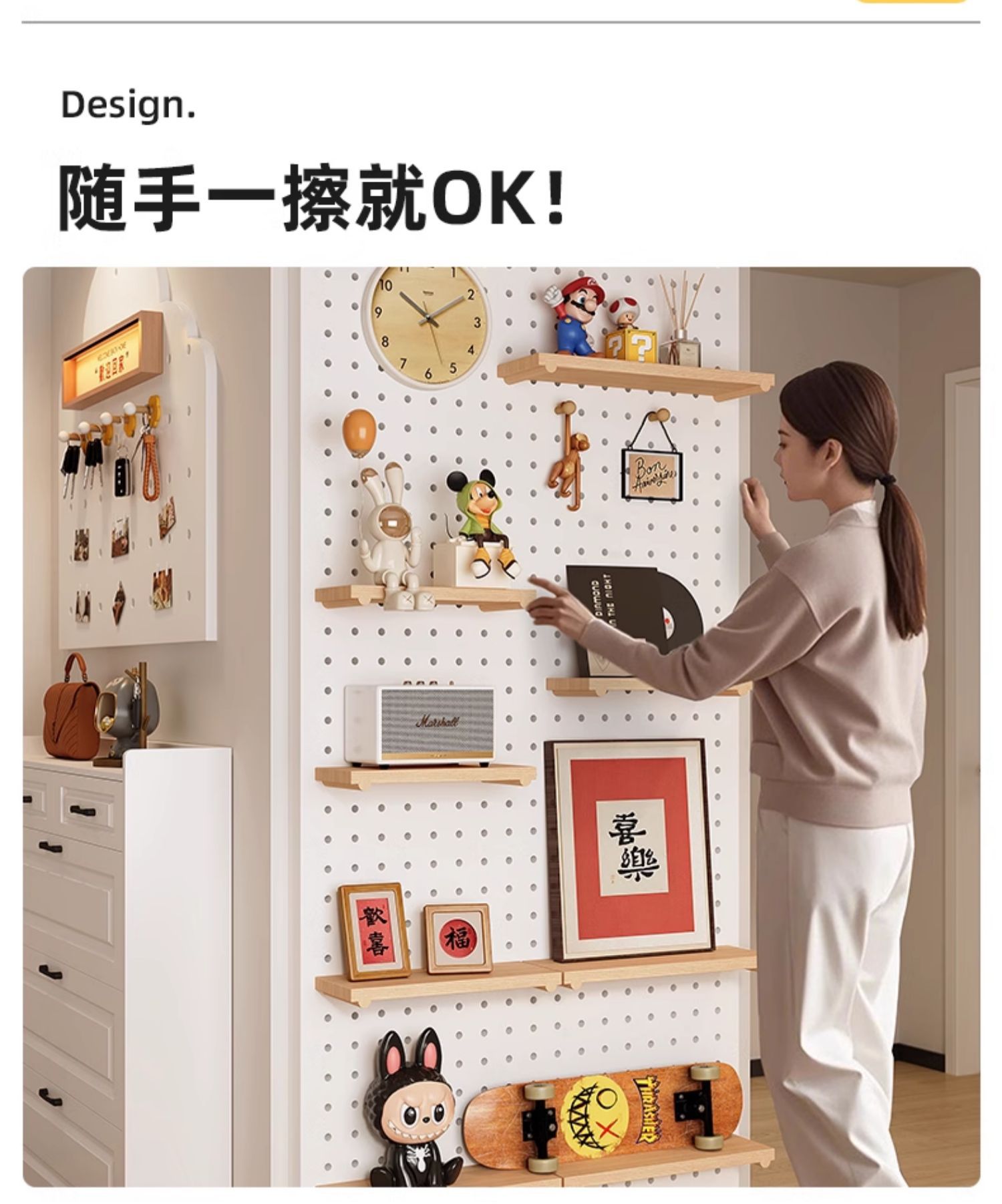 단단한 나무 구멍 보드 보관 랙 발코니 스타일 벽걸이 옷걸이 통합 벽 꽃 스탠드 녹색 식물 디스플레이 스탠드