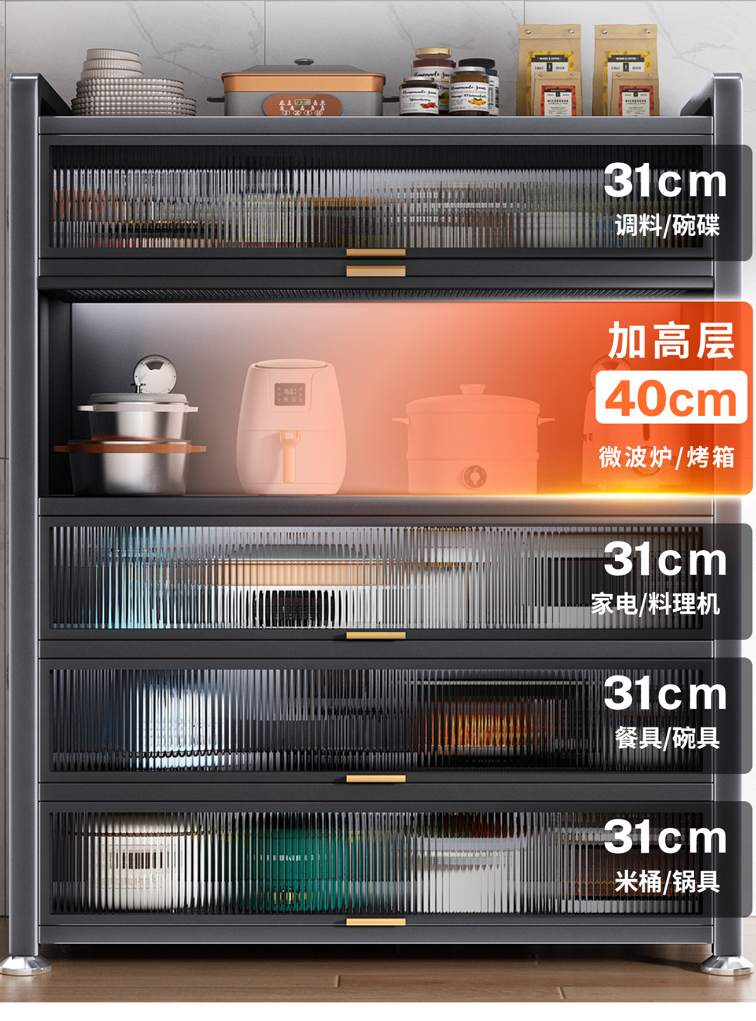 전자 레인지 보관 캐비닛 캐비닛 가정용 다기능 방진 주방 보관 캐비닛 다층 바닥에서 천장까지의 보관 랙 찬장