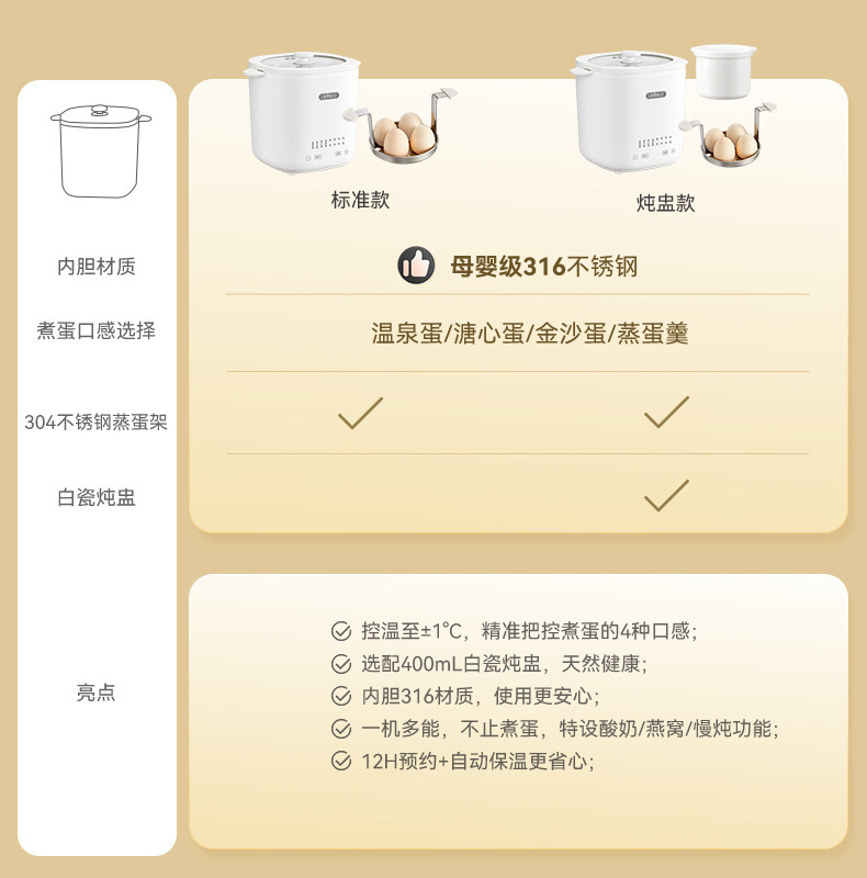 정품 현장 다채로운 징글 홈 소형 스테인레스 스틸 다기능 계란찜기 자동 전원 끄기 새로운 스타일
