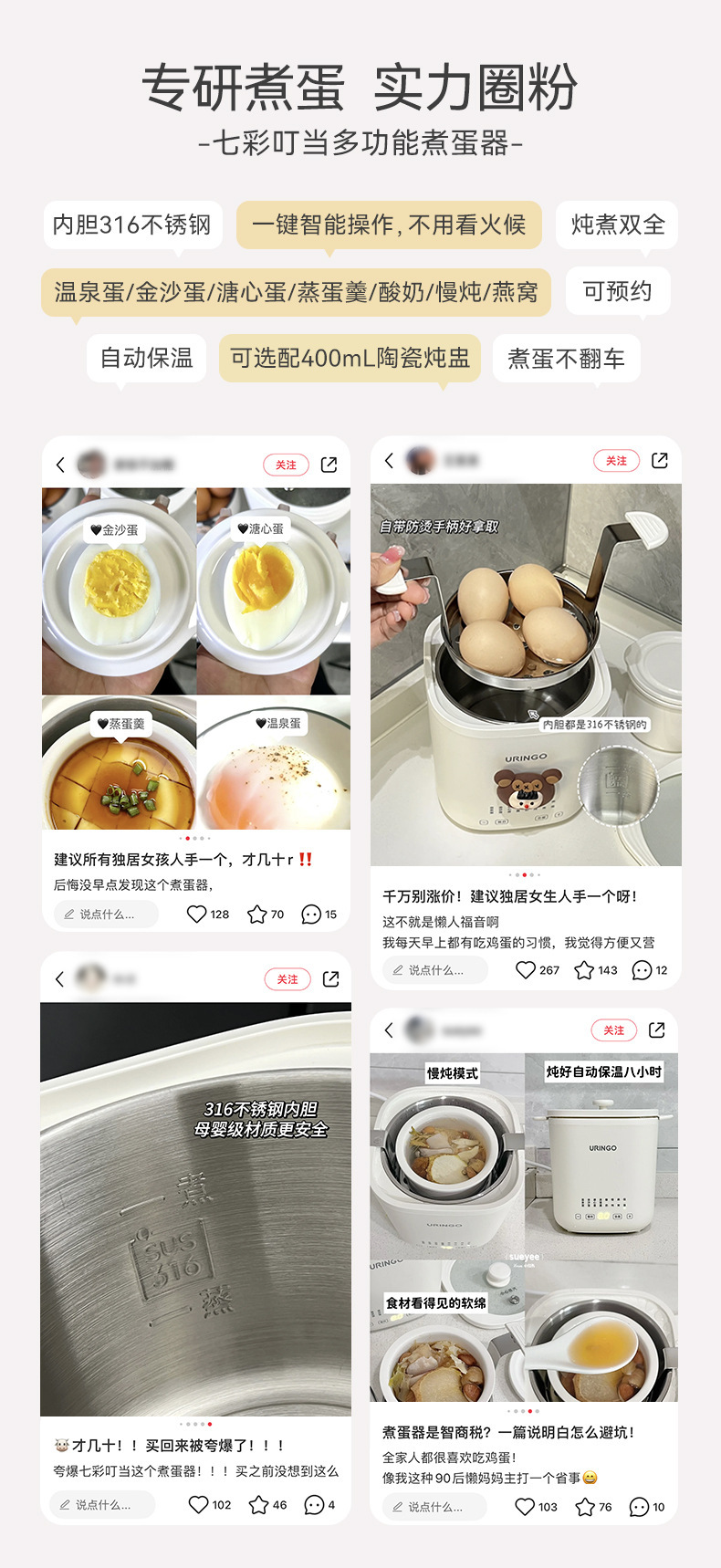 정품 현장 다채로운 징글 홈 소형 스테인레스 스틸 다기능 계란찜기 자동 전원 끄기 새로운 스타일스토어 가기