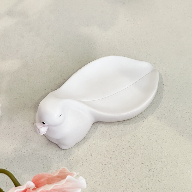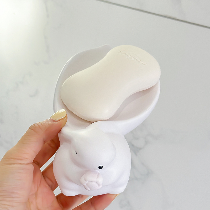 물이 쌓이지 않고 배수되는 욕실용 귀여운 토끼 비누 상자 장식품, 비누 접시 보관함, 세면대 욕실 장식