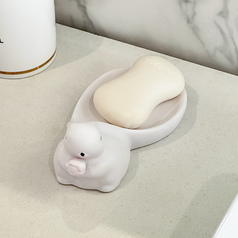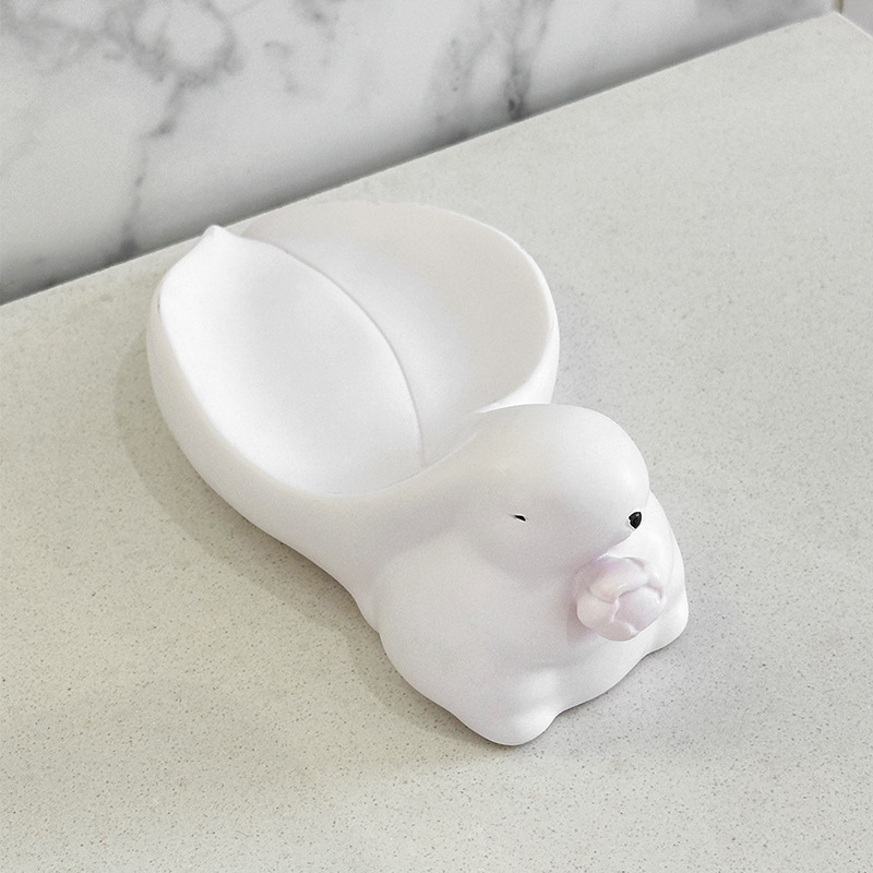 물이 쌓이지 않고 배수되는 욕실용 귀여운 토끼 비누 상자 장식품, 비누 접시 보관함, 세면대 욕실 장식스토어 가기