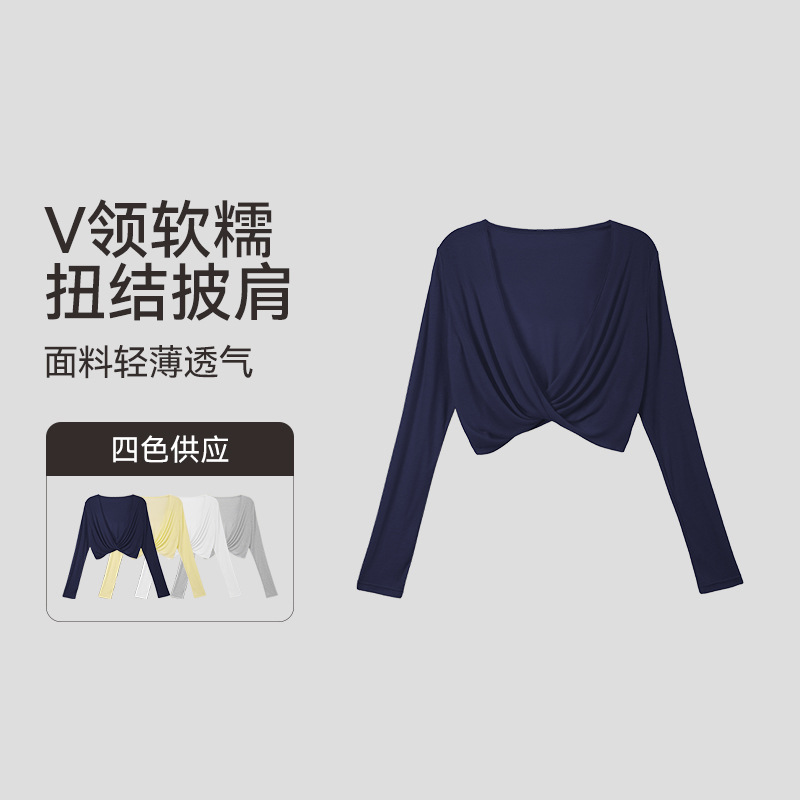 2025 새로운 스타일 v 넥 소프트 왁시 외부 트위스트 숄 긴팔 블라우스 캐주얼 요가 피트니스 야외 스포츠 탑