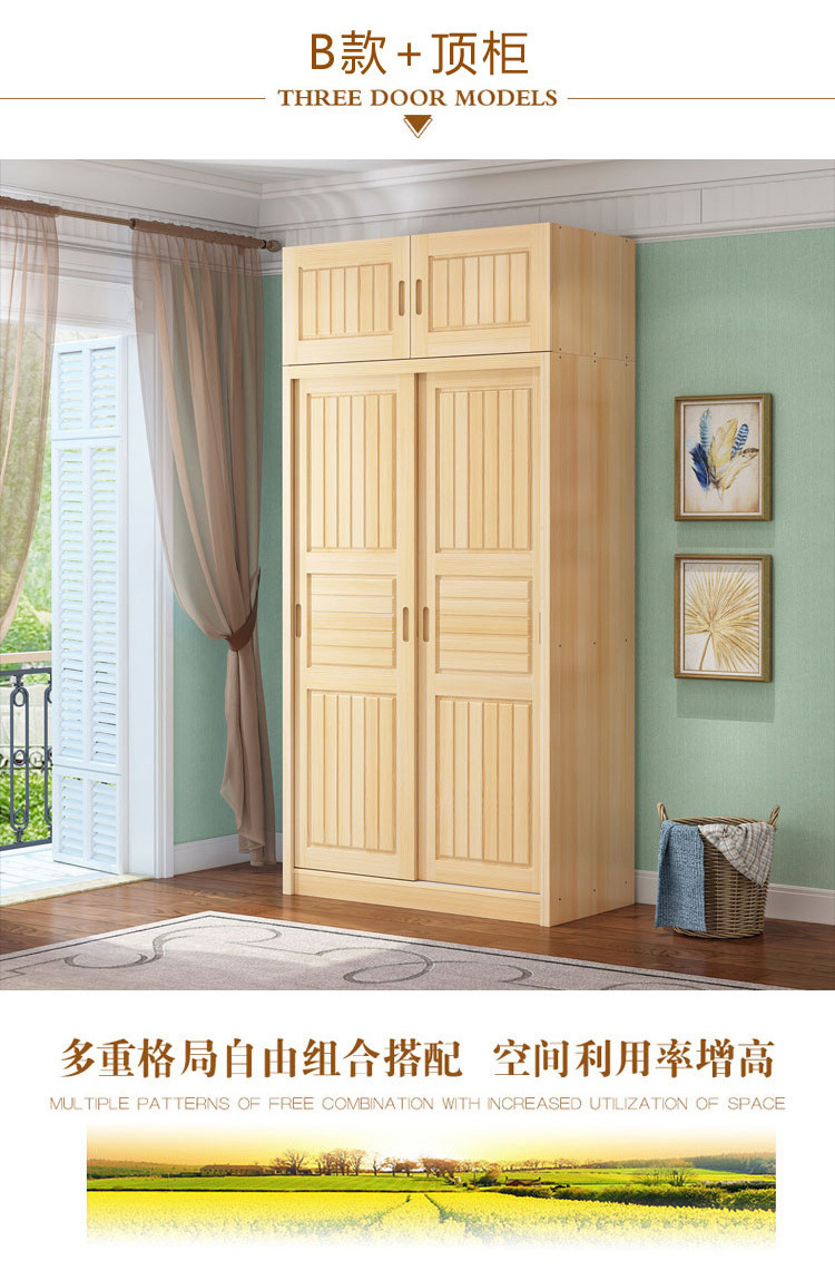 모든 단단한 소나무 슬라이딩 도어 옷장 간단한 통나무 성인 침실 2 도어 어린이 수납 옷장 조립스토어 가기