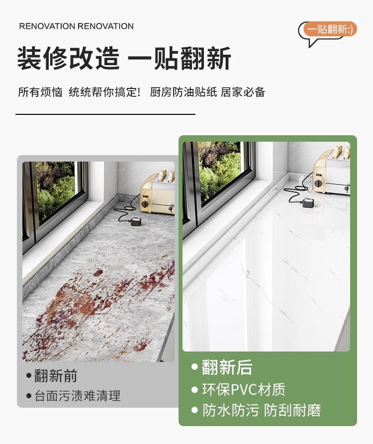 주방 방수 및 방수 스티커 가정용 두꺼운 모조 타일 벽 스티커 스토브 데스크탑 장식 방습 벽지 자체 접착